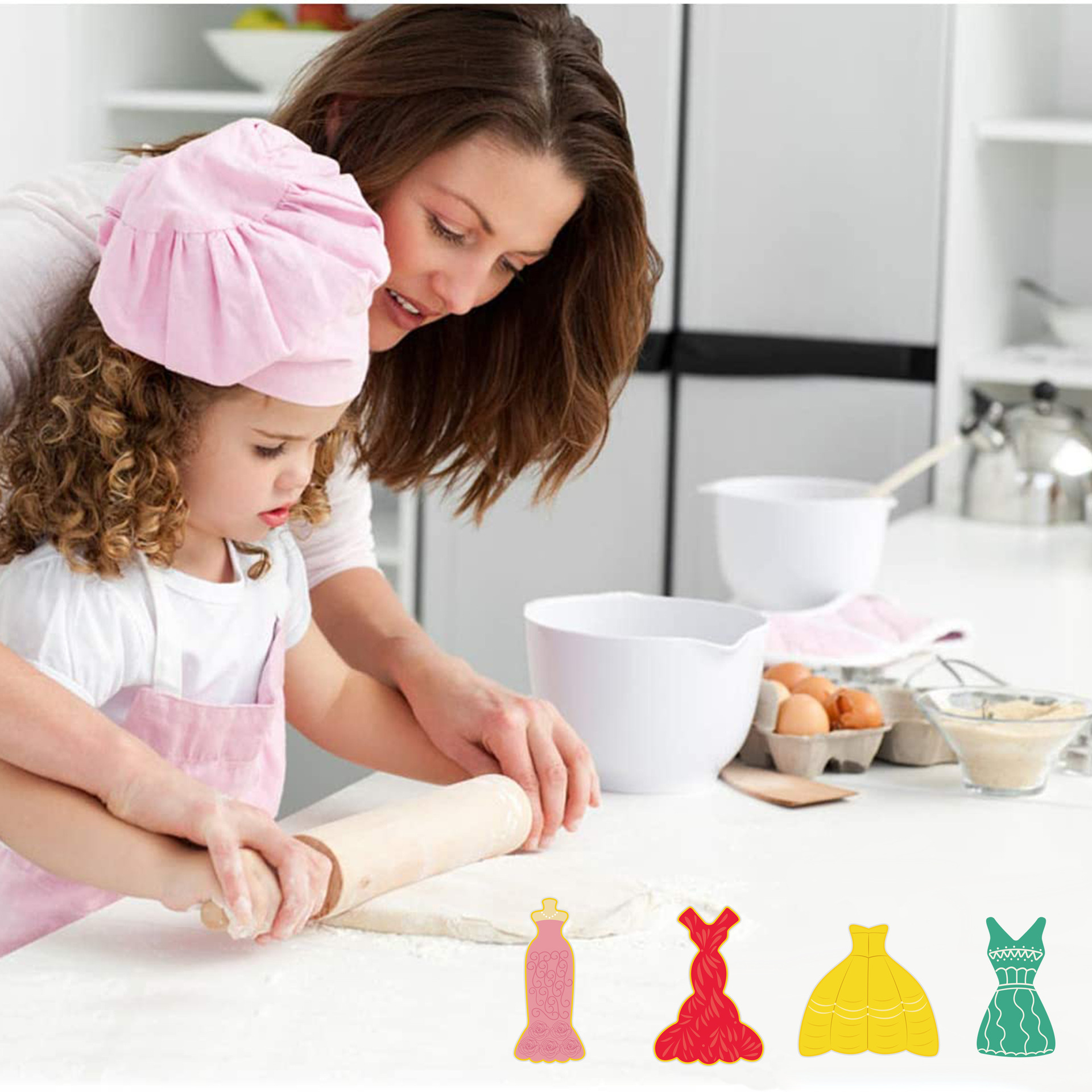 Instructions: Place the dough on a sugarpaste silicone mat and roll it flat with a rolling pin. Cut out the desired shapes, place them in the oven, and once baked, remove them. Use buttercream, food coloring, jam, etc. to apply your favorite designs.