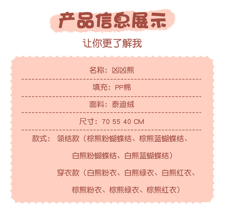 Due to the large size of some plush toys, there may be a slight deviation from the product description after receiving the goods.