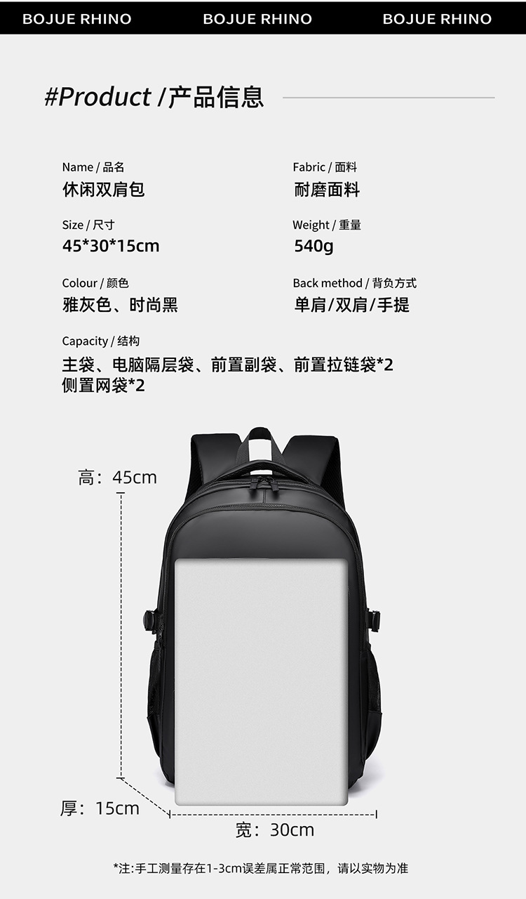 men's business backpack large capacity lightweight computer backpack travel commute leisure backpack waterproof and hard-wearing