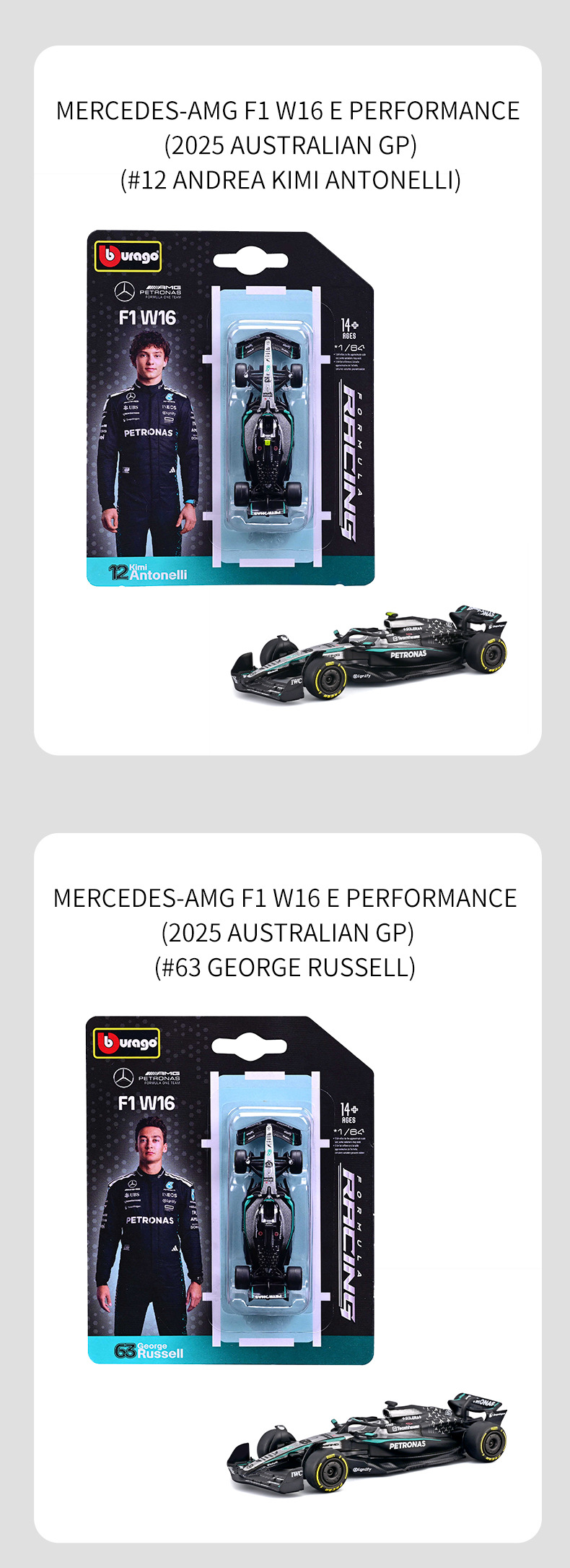 1:64 card mounted f1 mercedes-benz #12