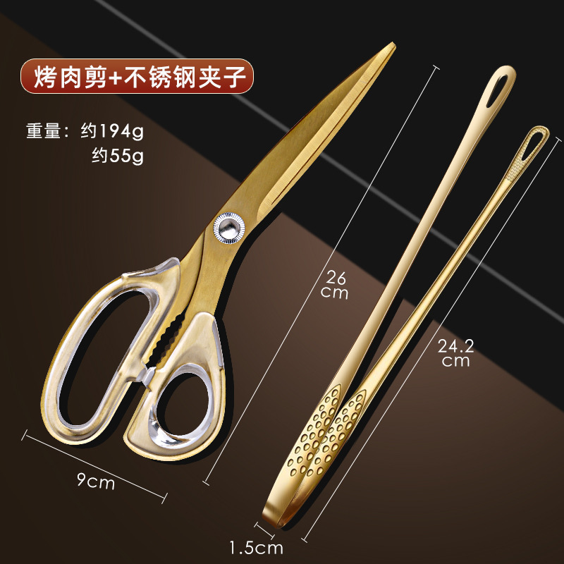 k201 acrylic barbecue scissors + 9-inch star-pattern tongs ----- gold color