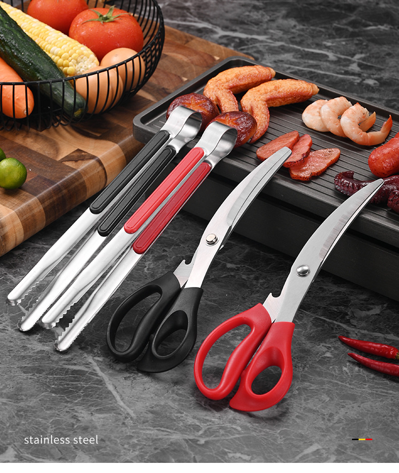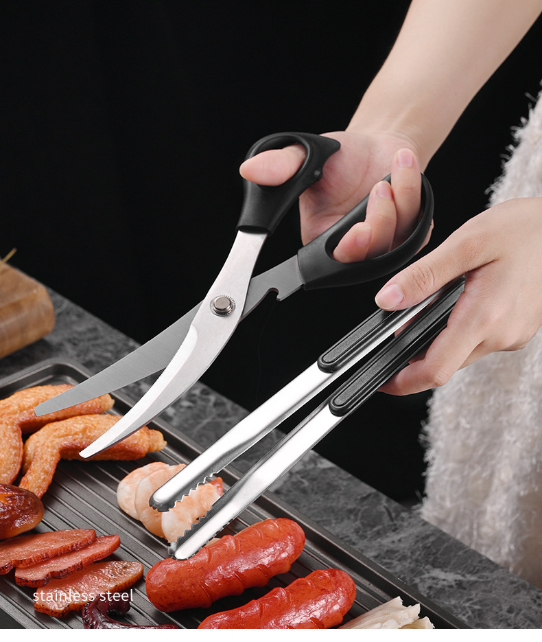 stainless steel barbecue scissors clip set korean bbq clamp restaurant barbecue clip steak food clip cuisine scissors