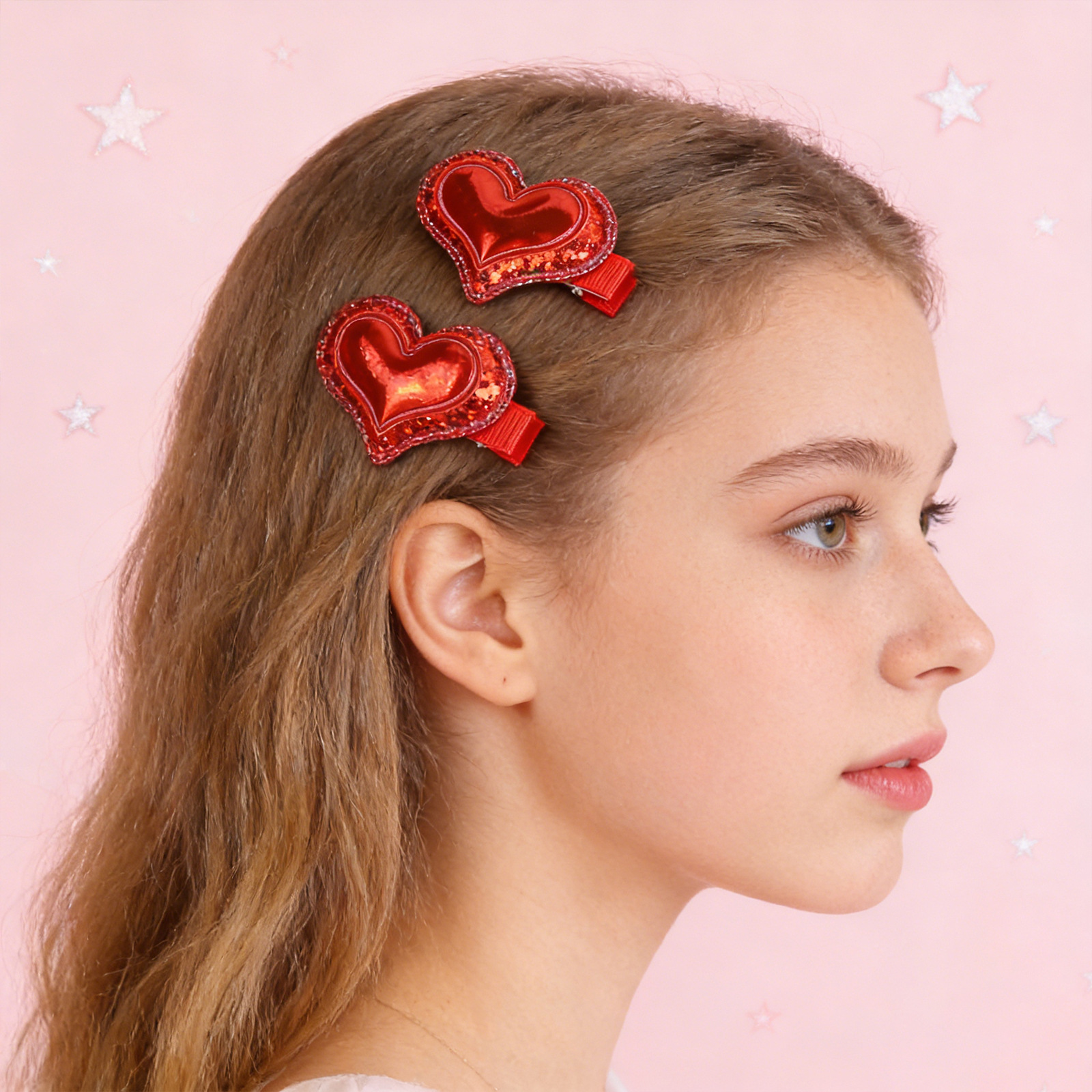 valentine's day double layer onion powder sequins love heart-shaped hairpin