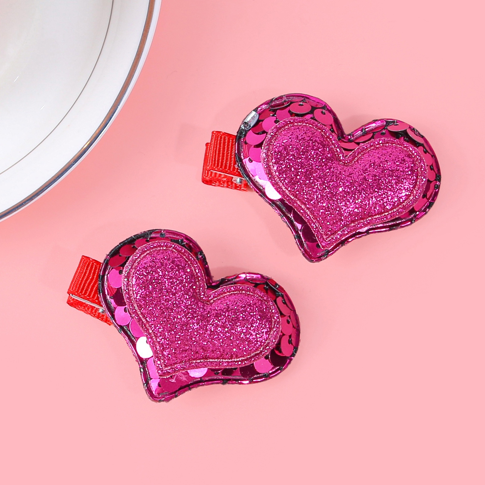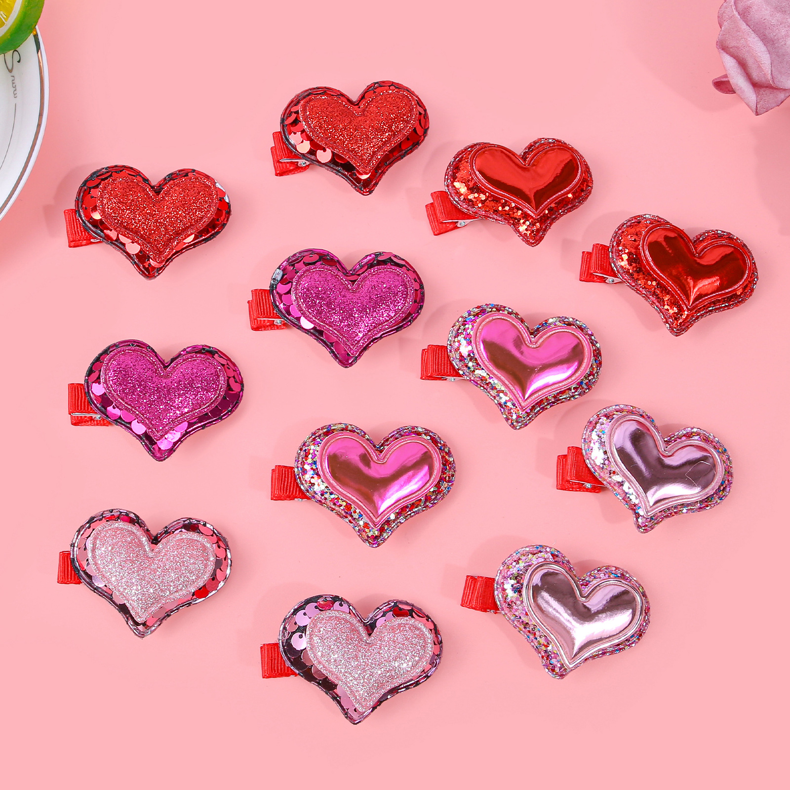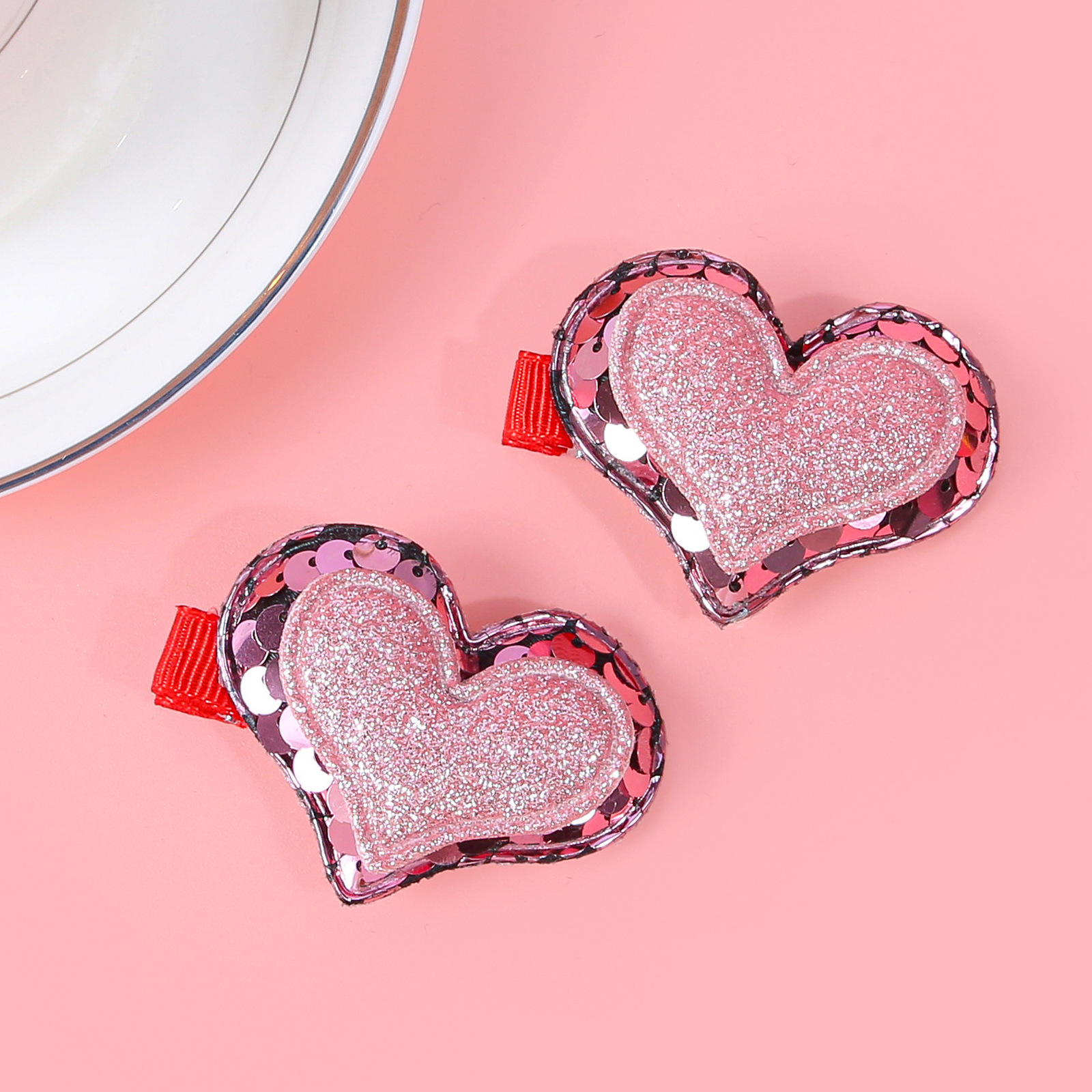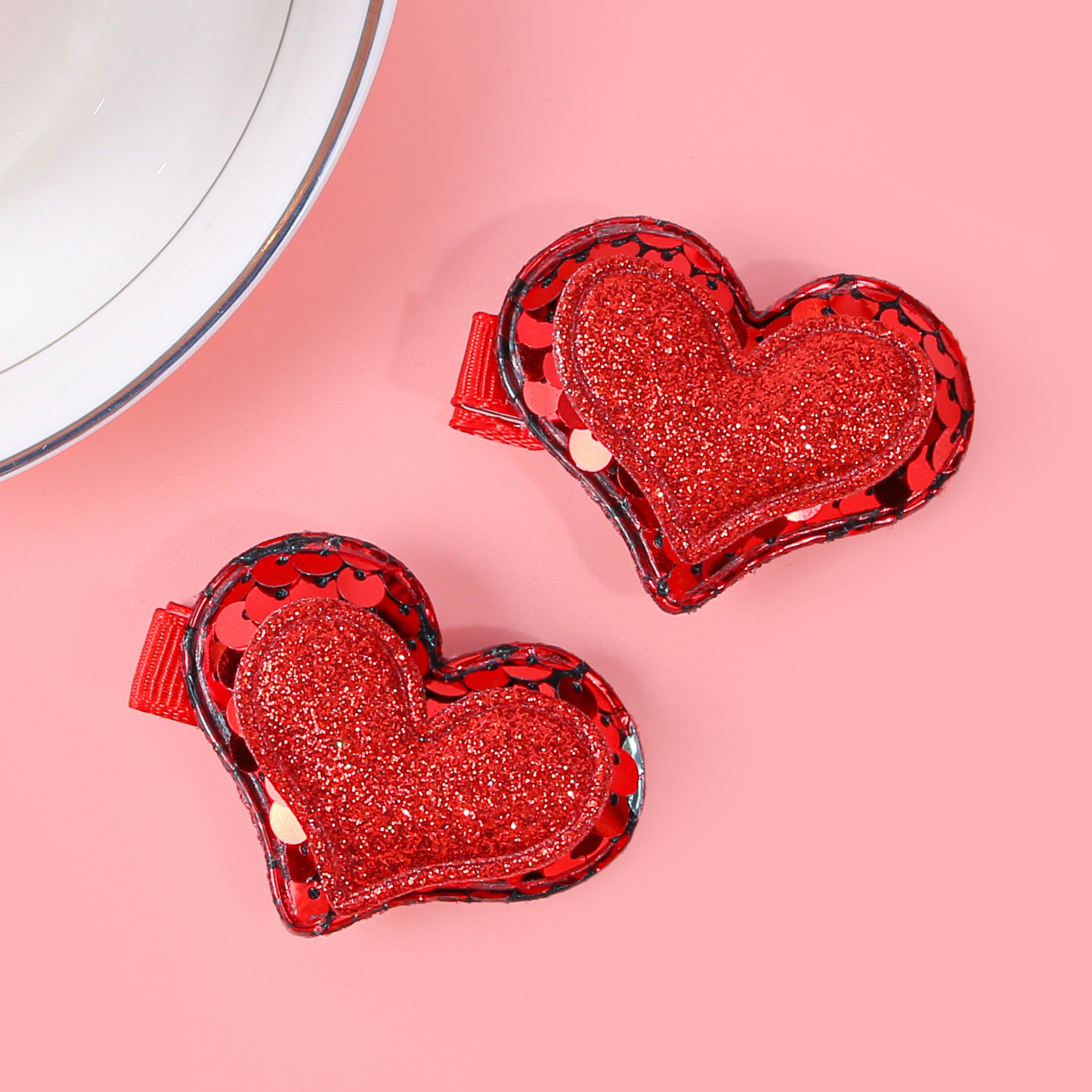 item no.: valentine's day double layer onion powder sequins love heart-shaped hairpin
