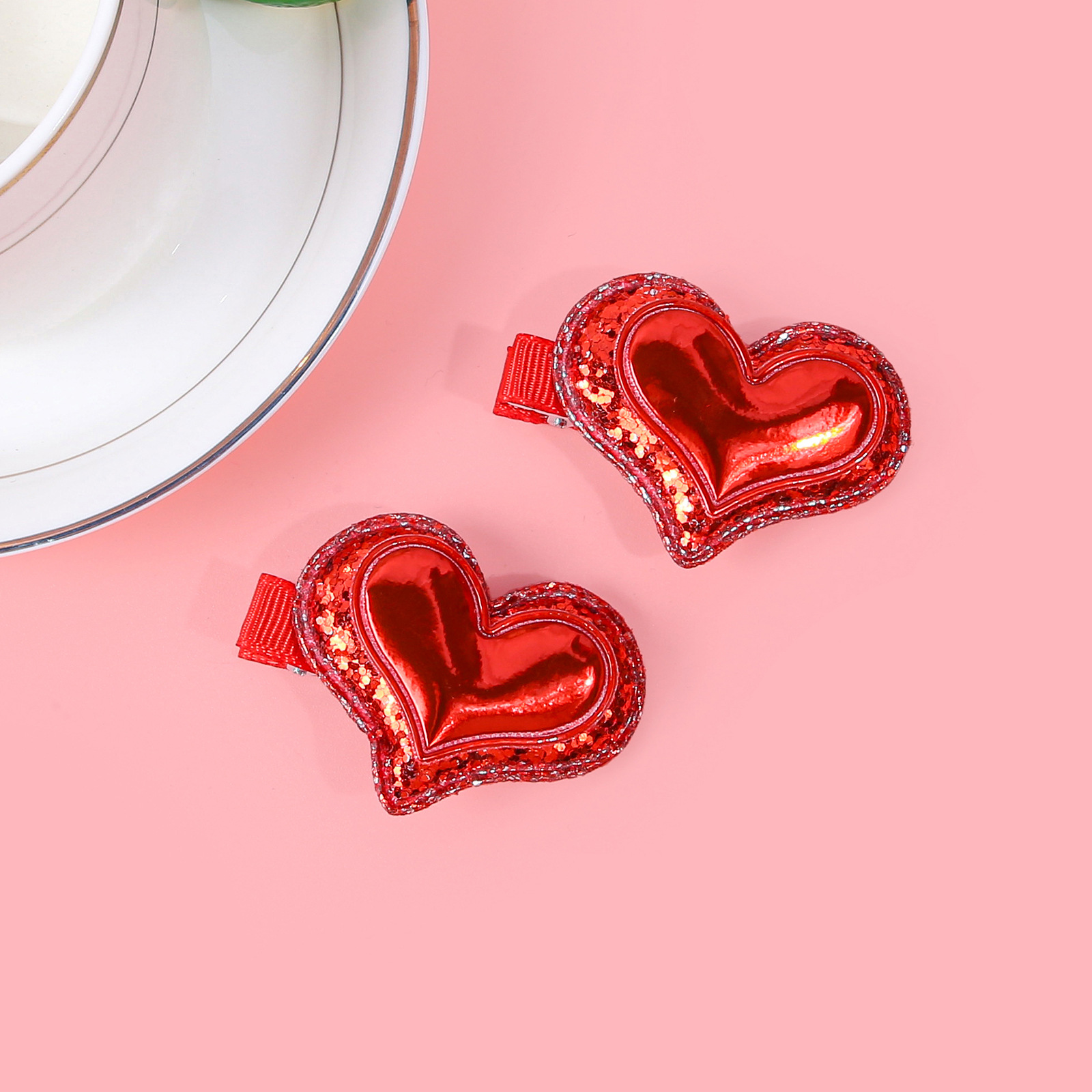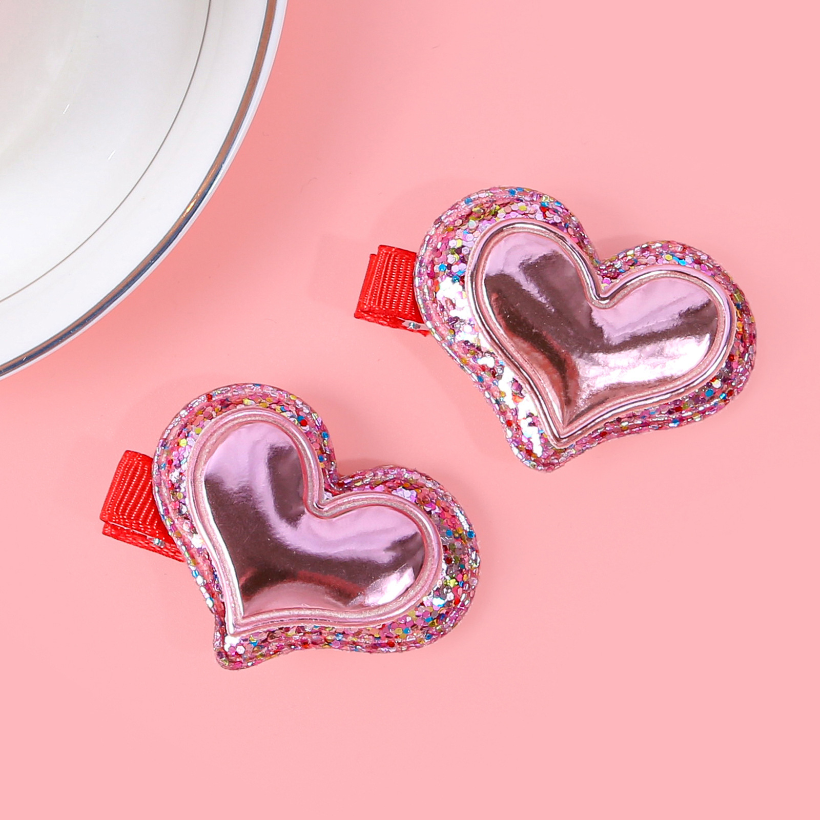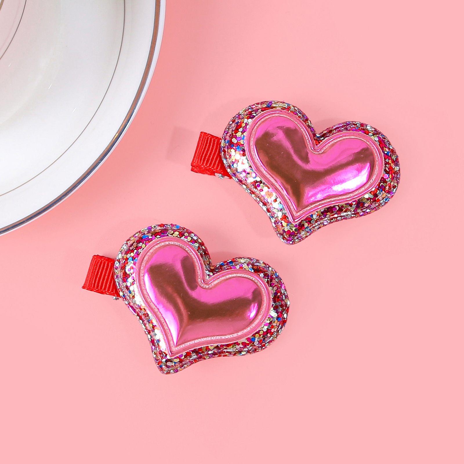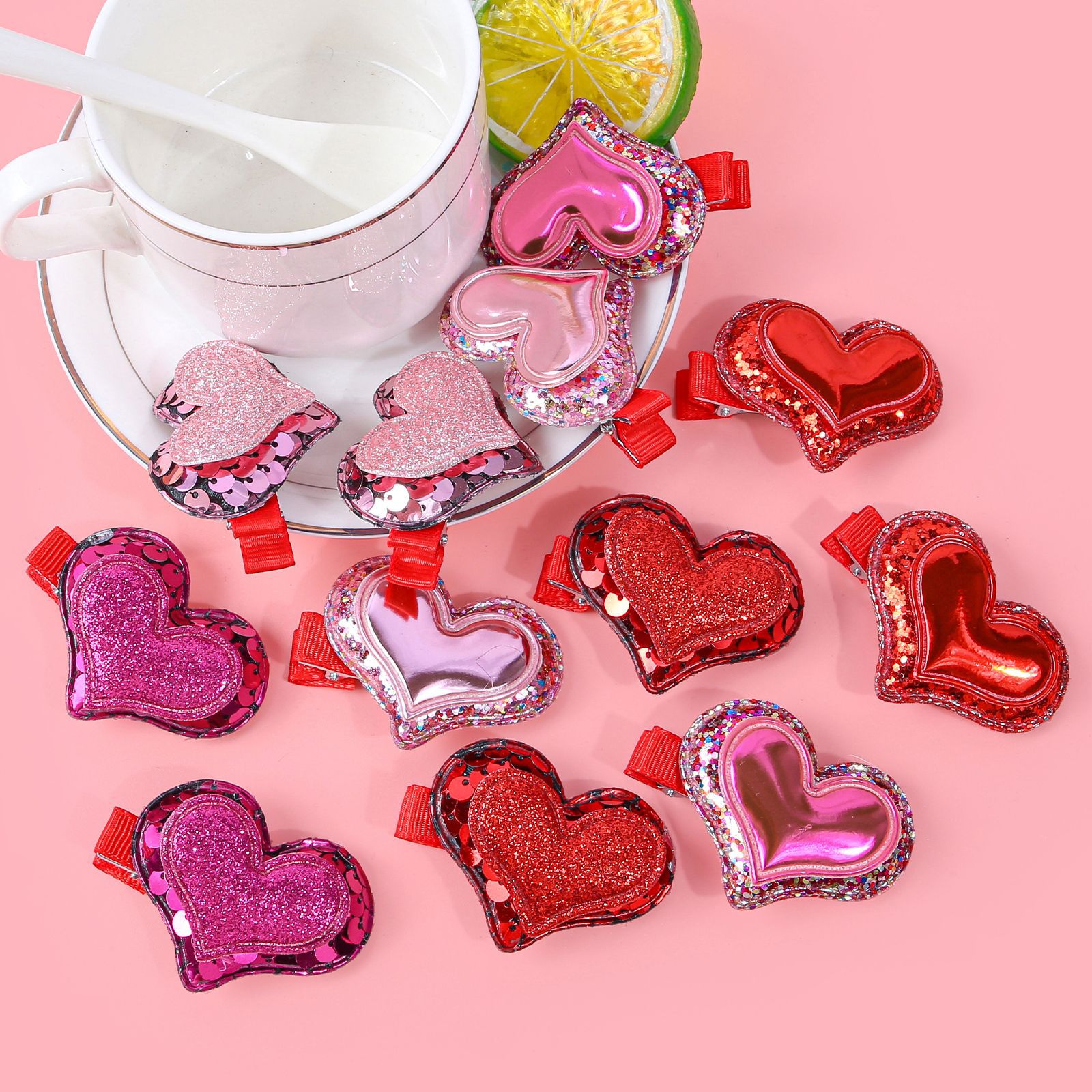 item no.: valentine's day double layer onion powder sequins love heart-shaped hairpin