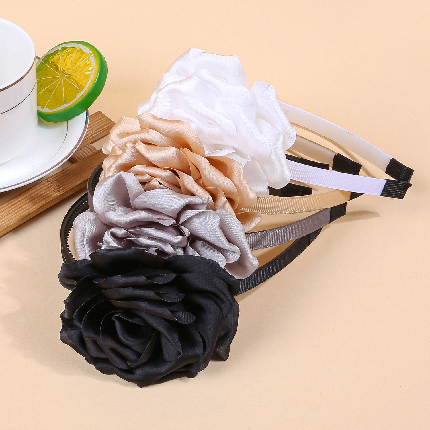korean style satin fabric flower headband women's bandeau headband high sense flower headband party dress up hair accessories