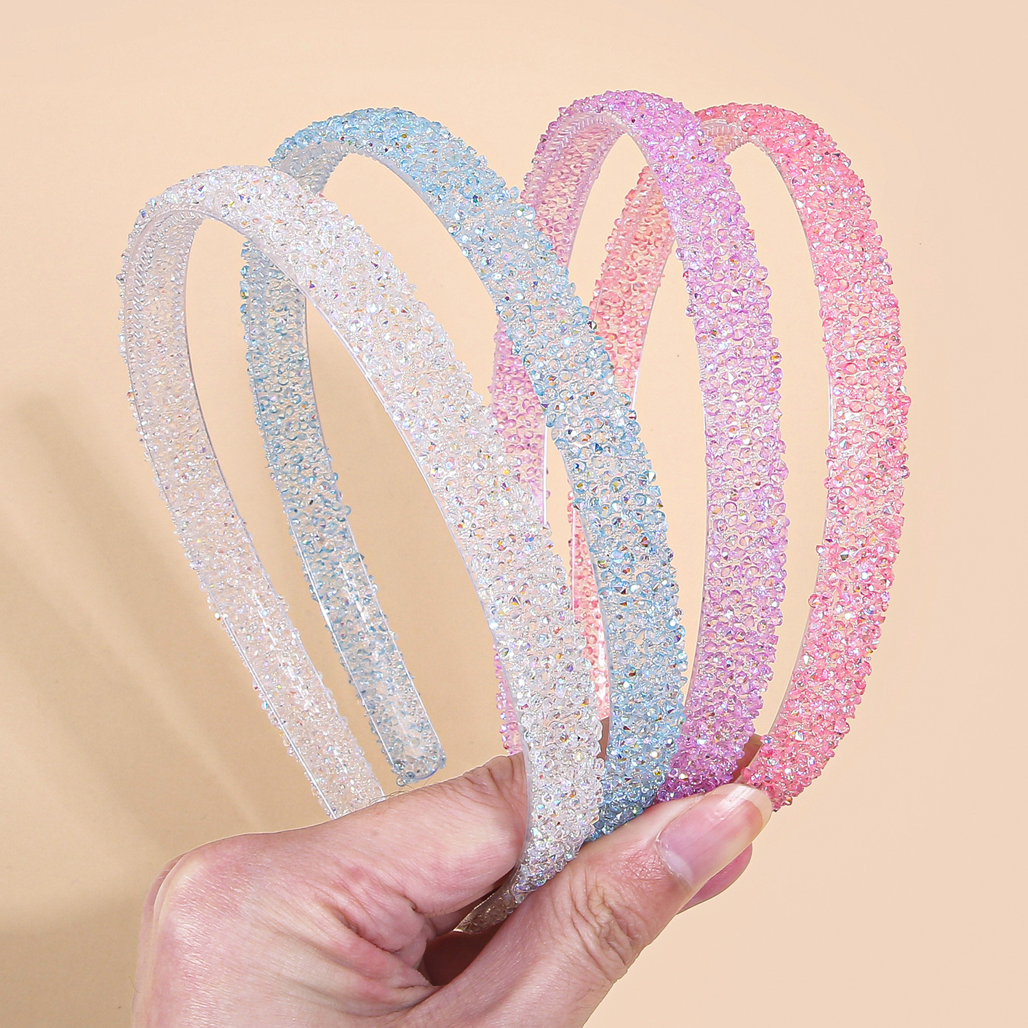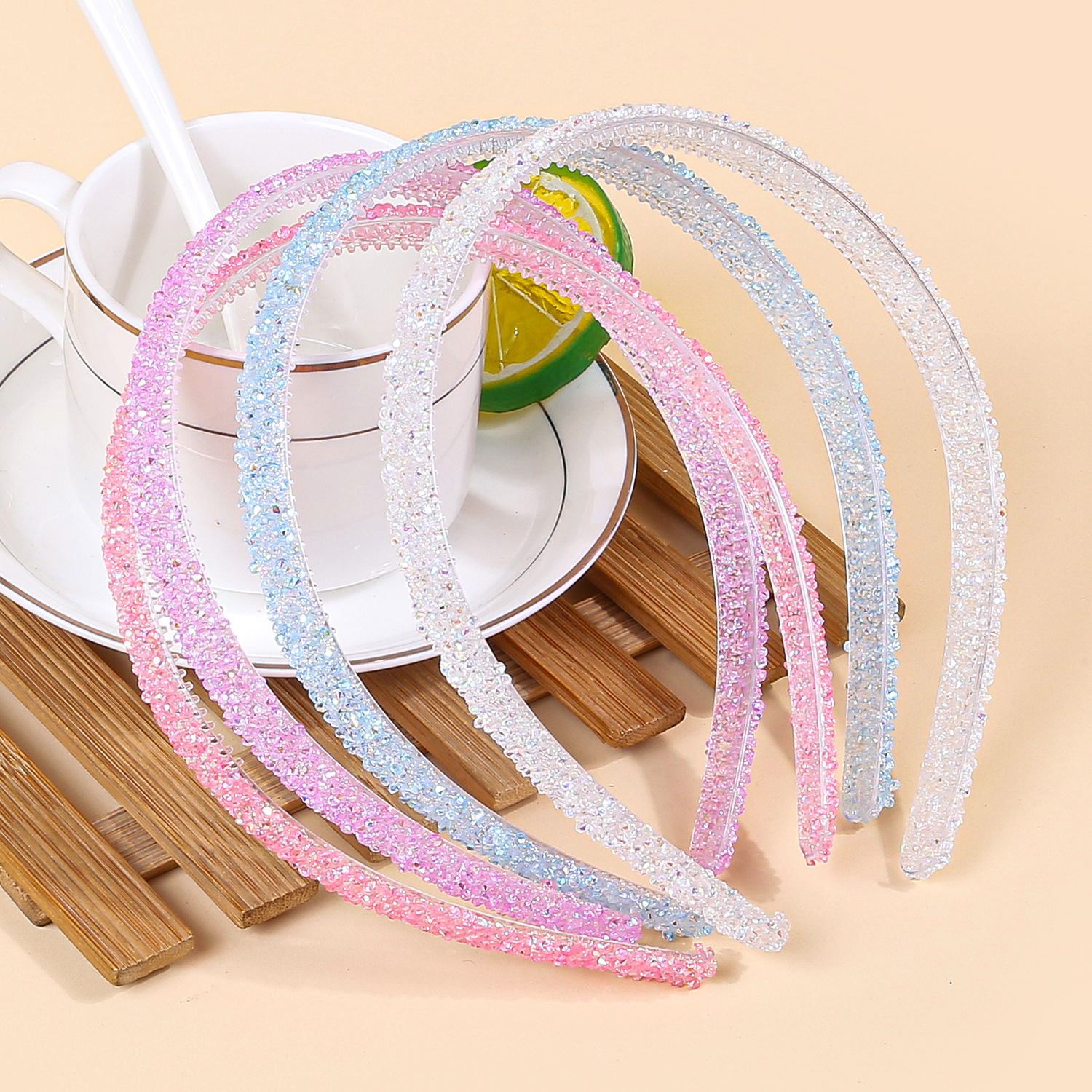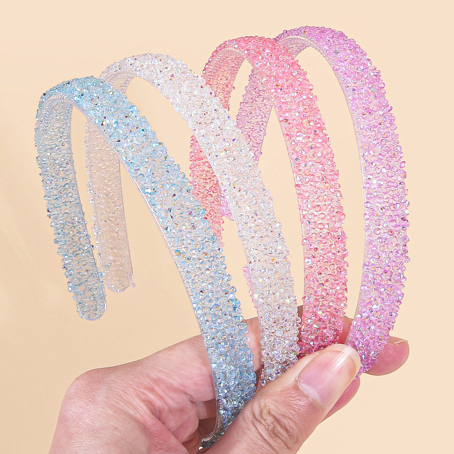 new flat bottom jelly diamond headband color rhinestone rubber tube high-end headband hairpin beautiful headband hair accessories
