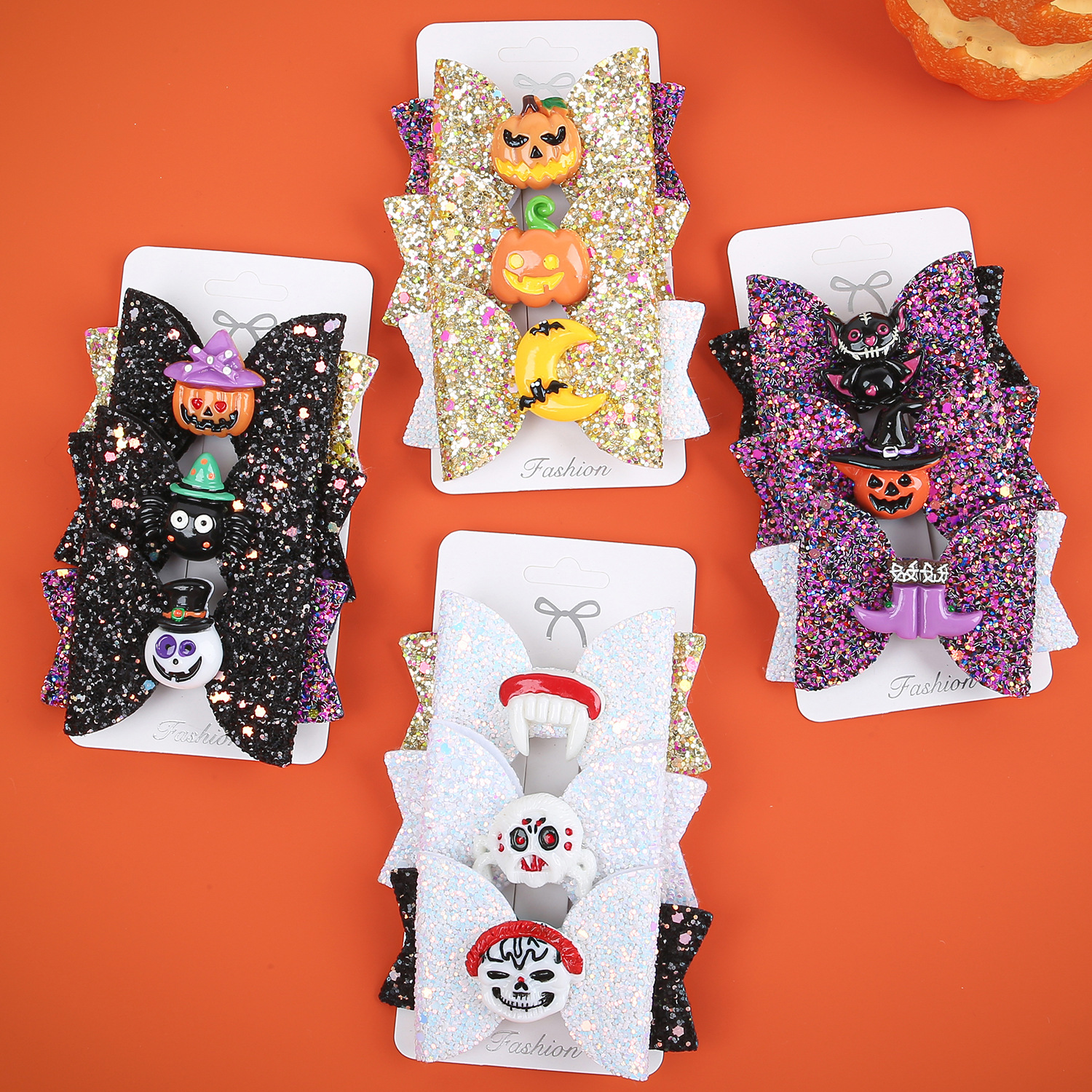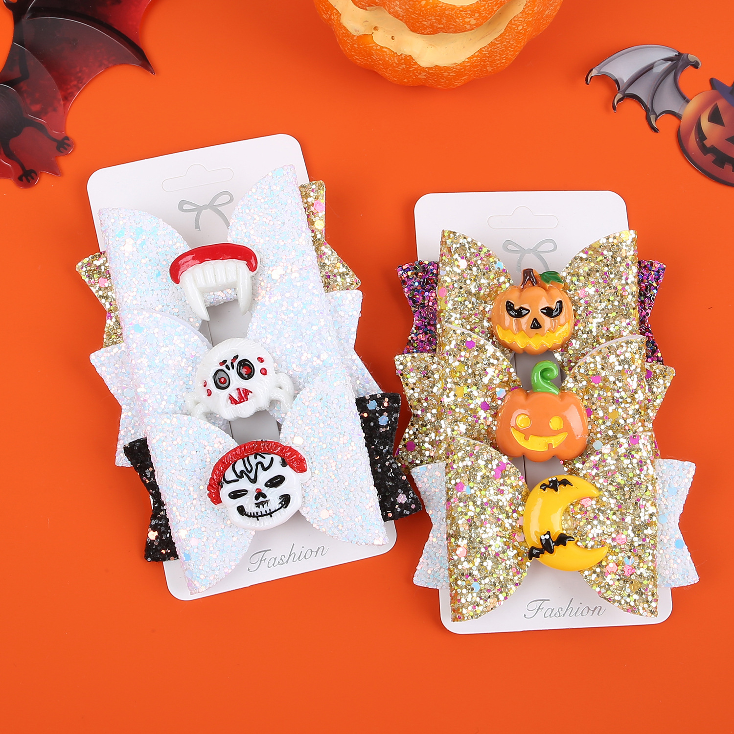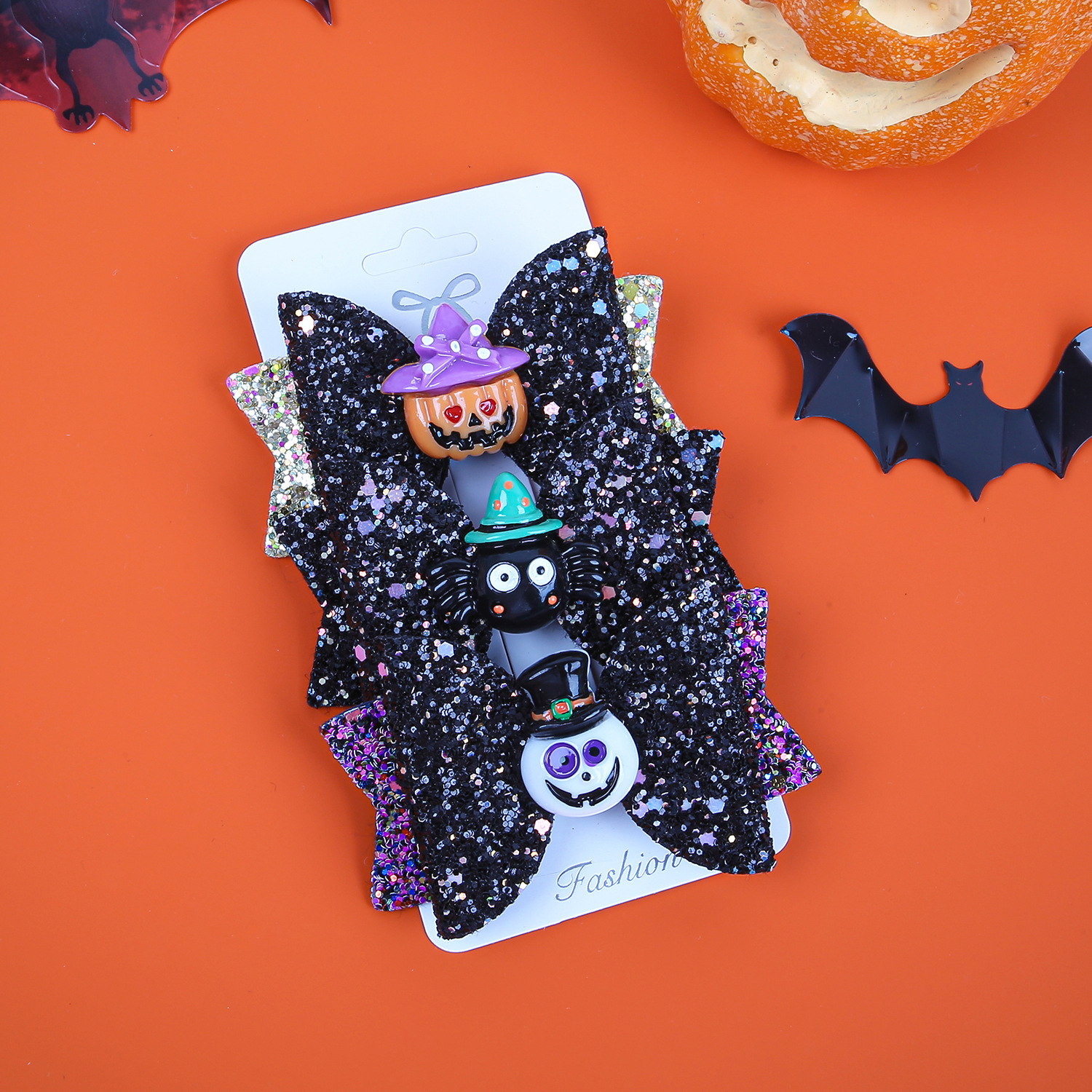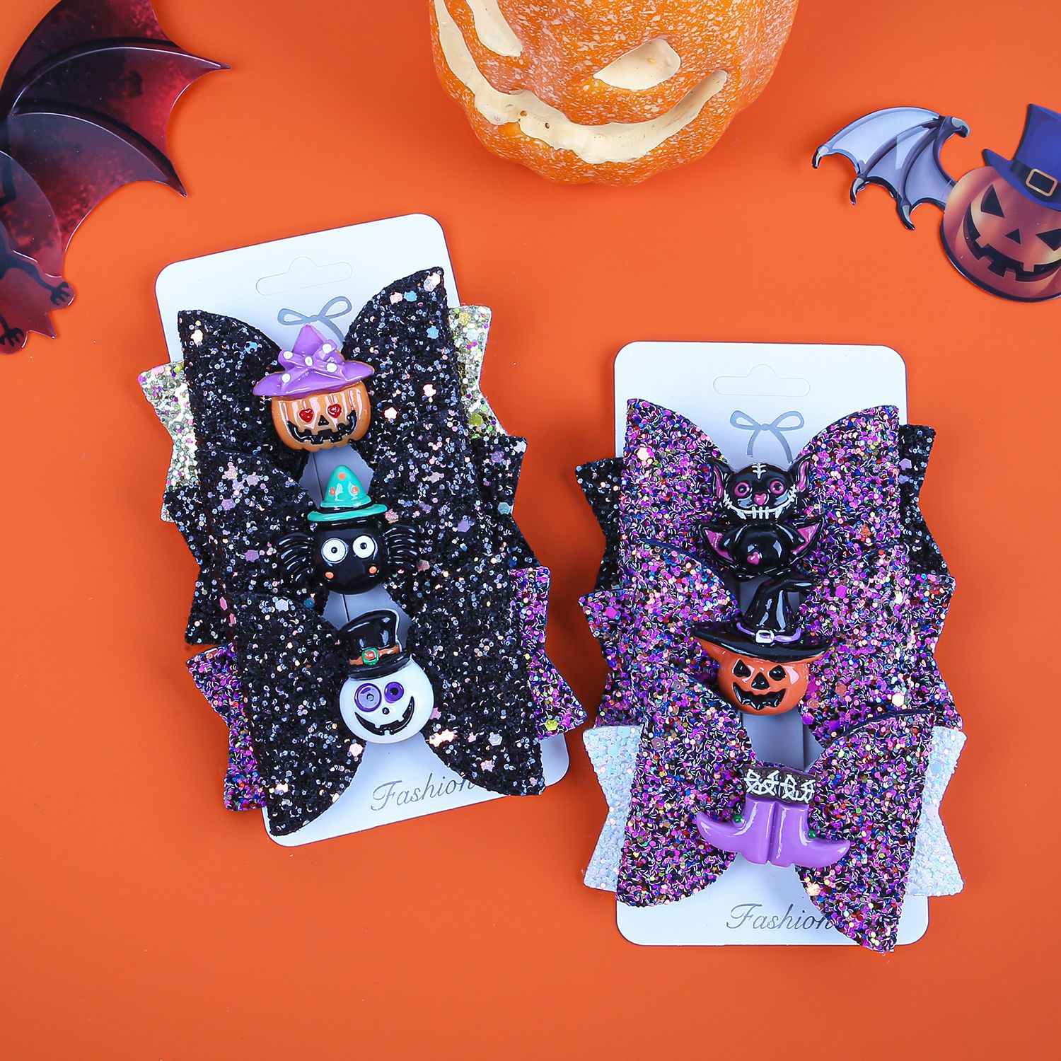 3 pcs/card new halloween barrettes ghost festival devil funny bow barrettes party holiday suit hair accessories