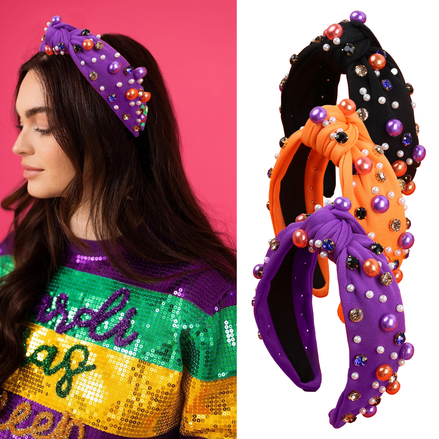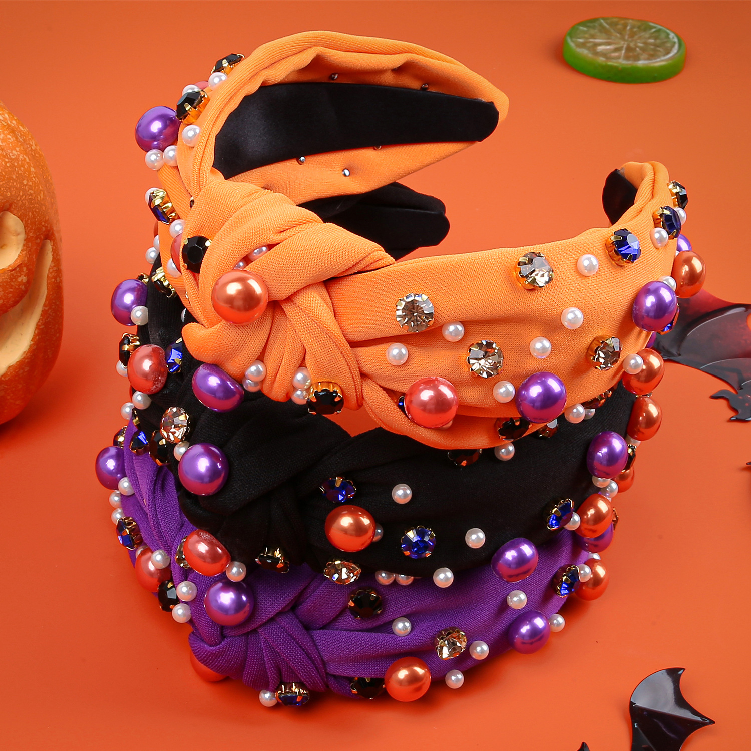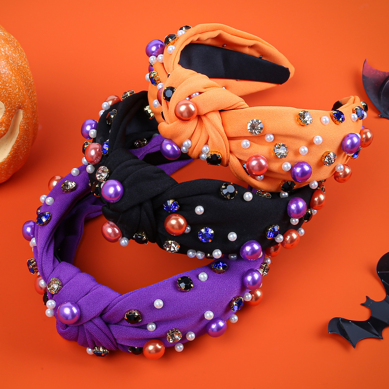 european and american new halloween fabric headband pearl rhinestone headband high skull top headband holiday party hair accessories
