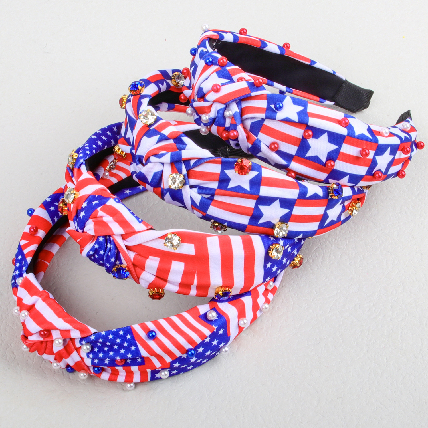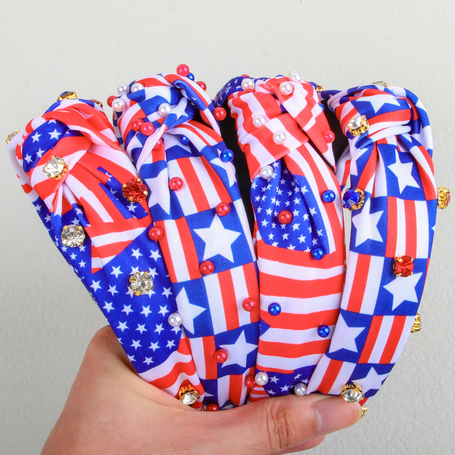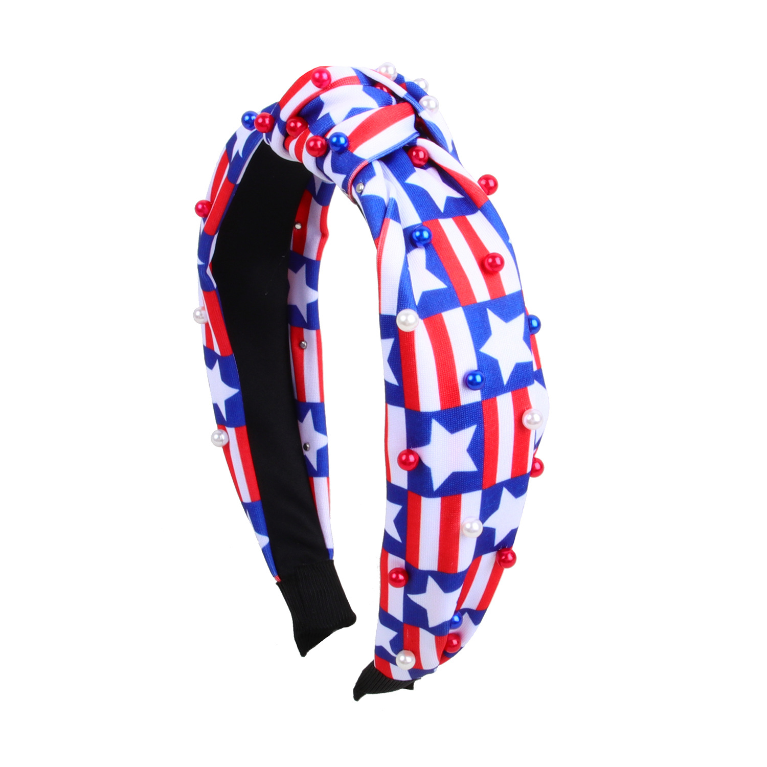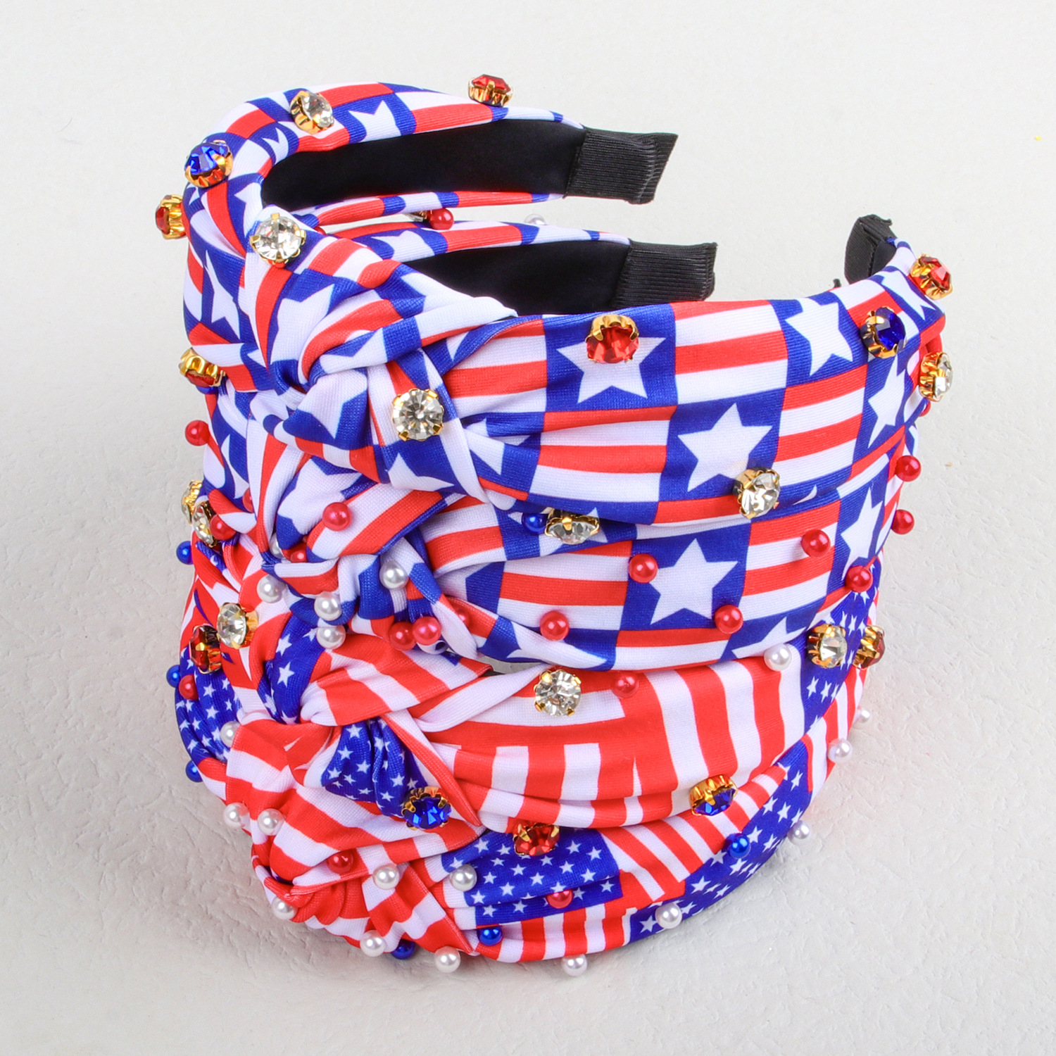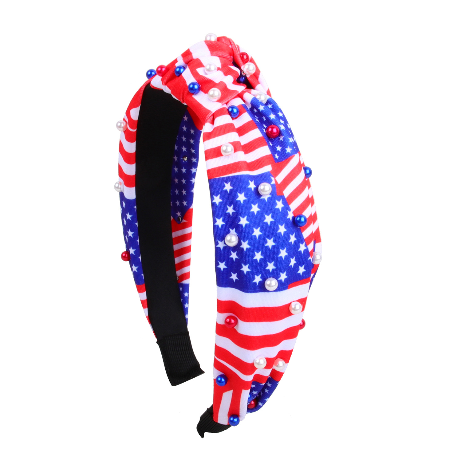 american independence day headband fabric knotted rhinestone headband five-pointed star stripes pearl headband festival hair accessories