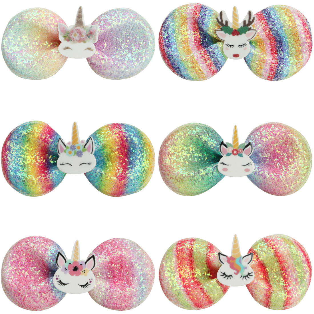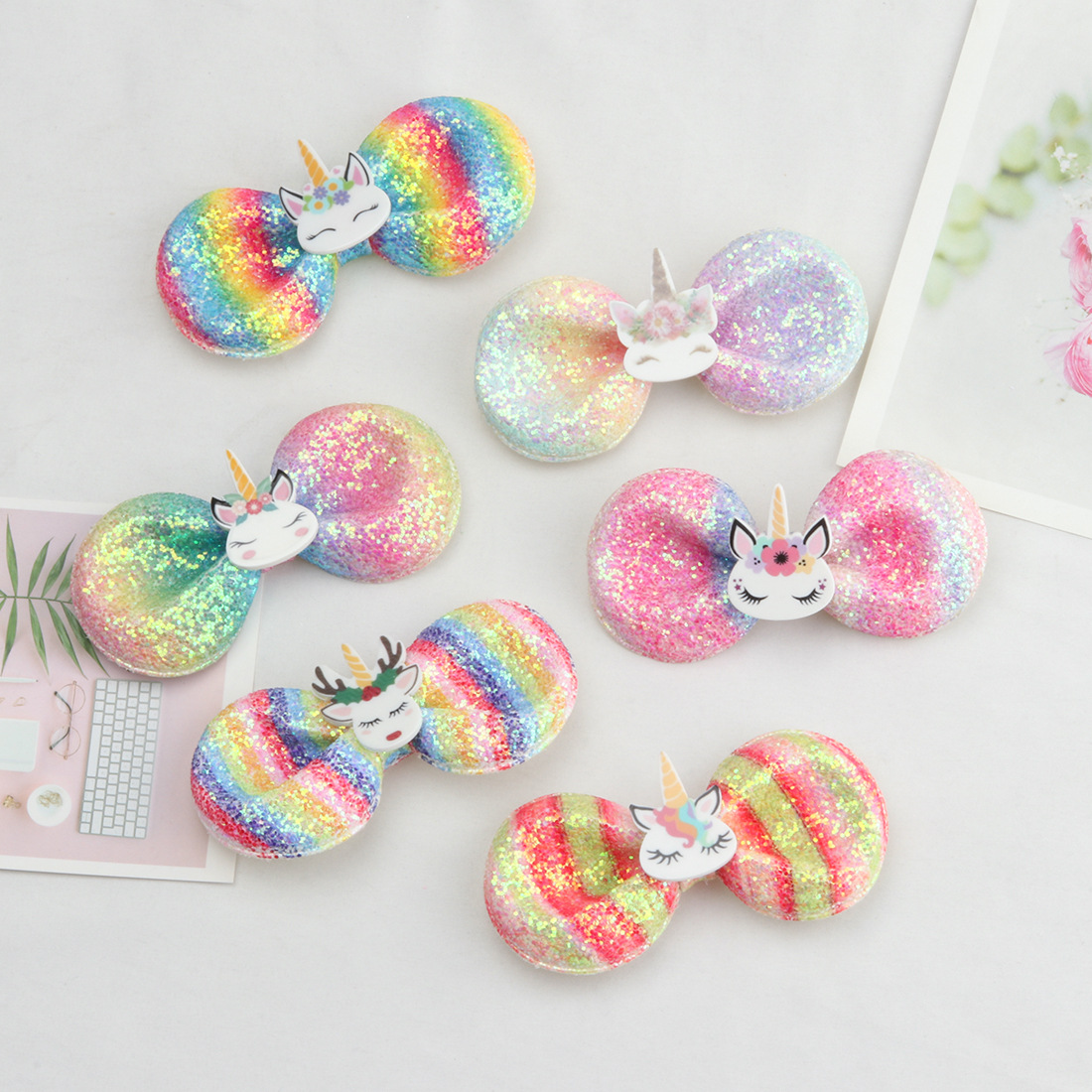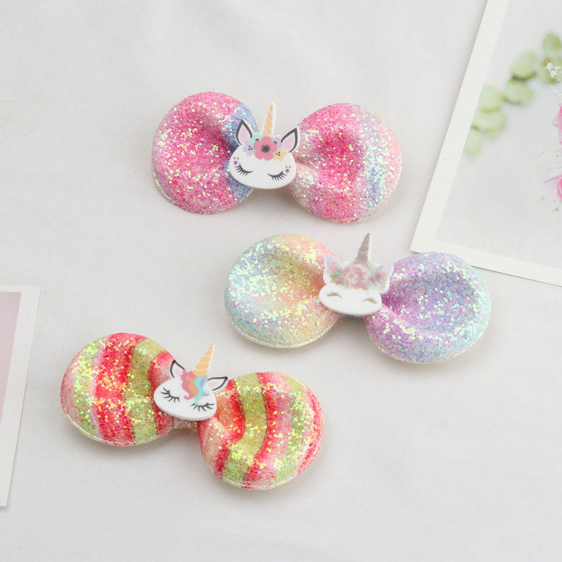 cross-border gradient color bow barrettes children's onion powder sequins unicorn butterfly barrettes hair accessory for ponytail