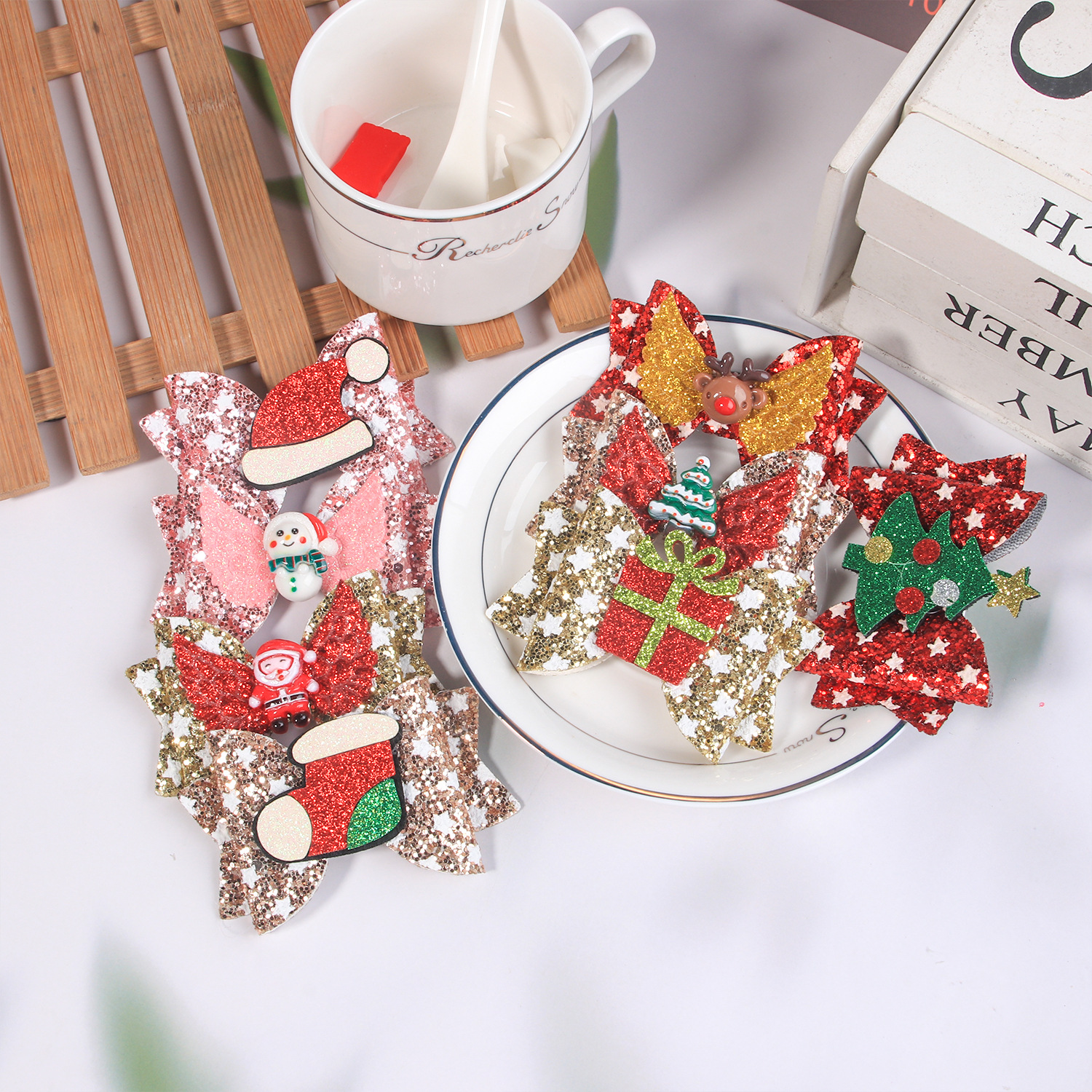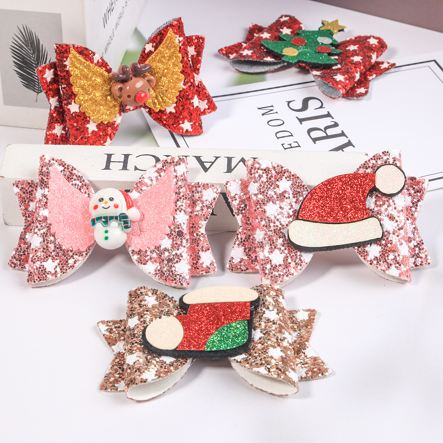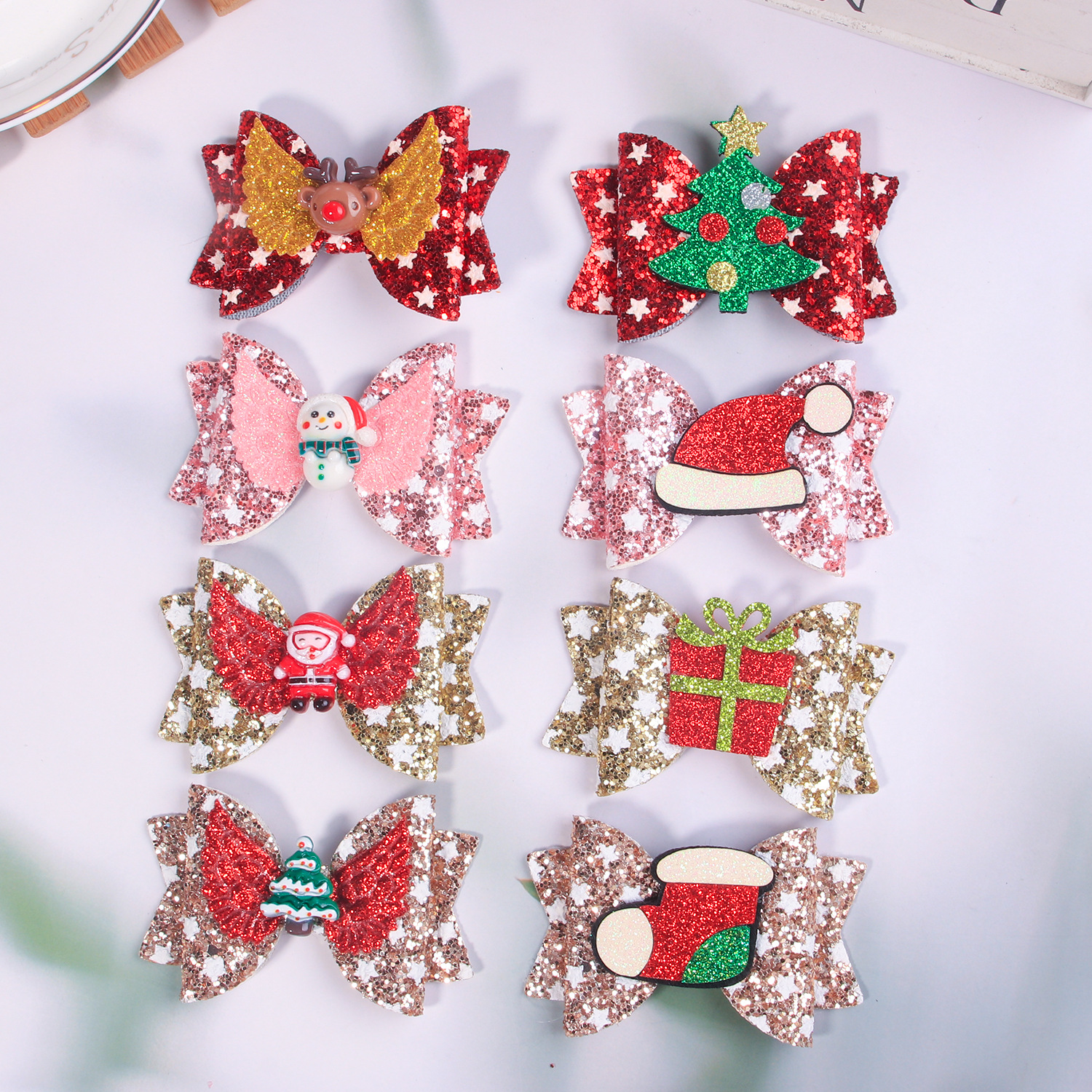 children's christmas bow barrettes sequined onion powder great bow christmas barrettes party hair accessories