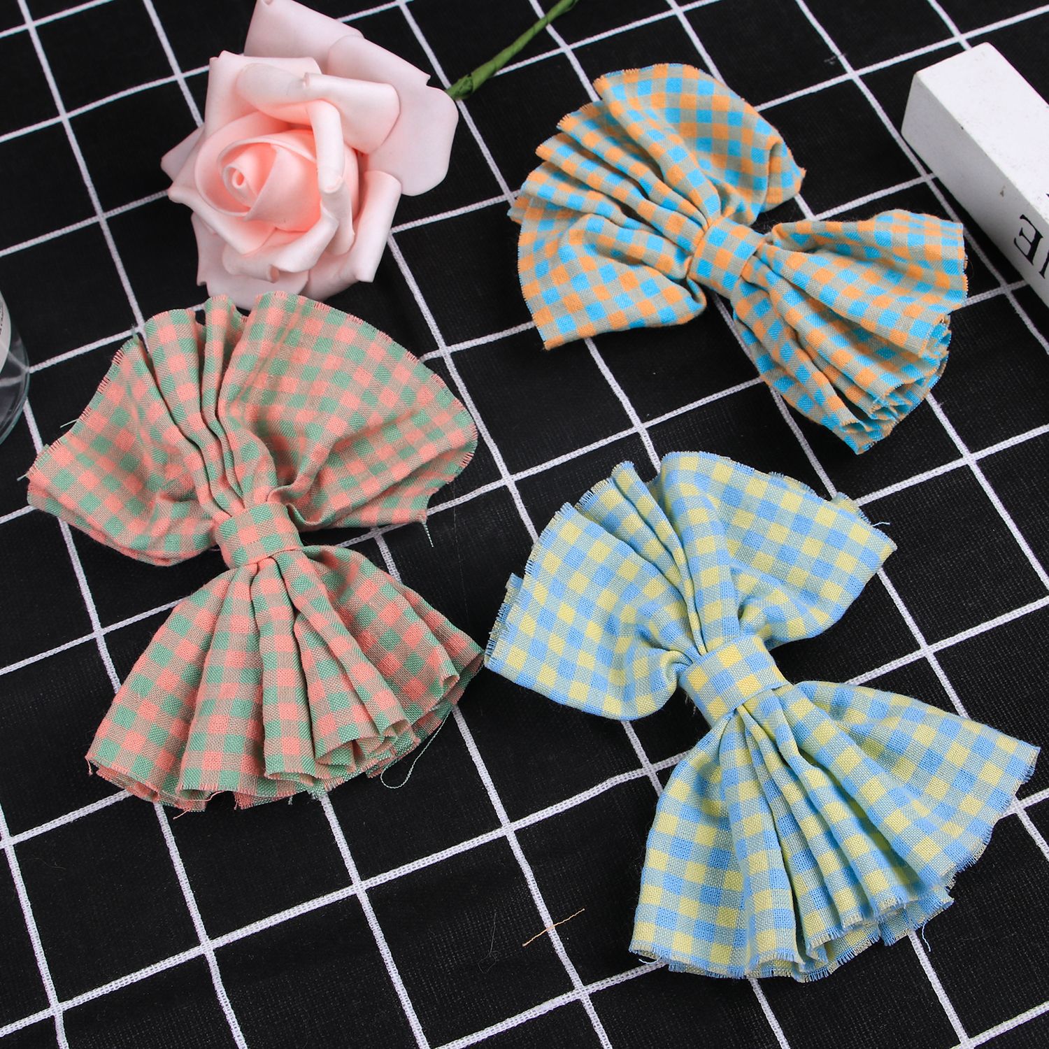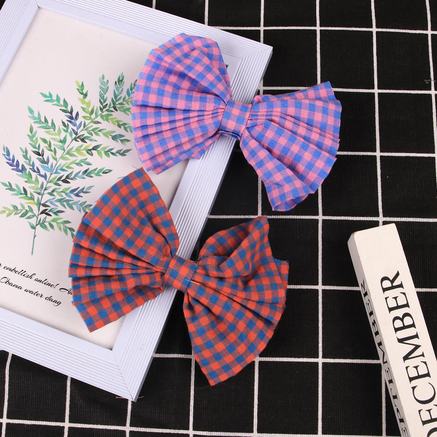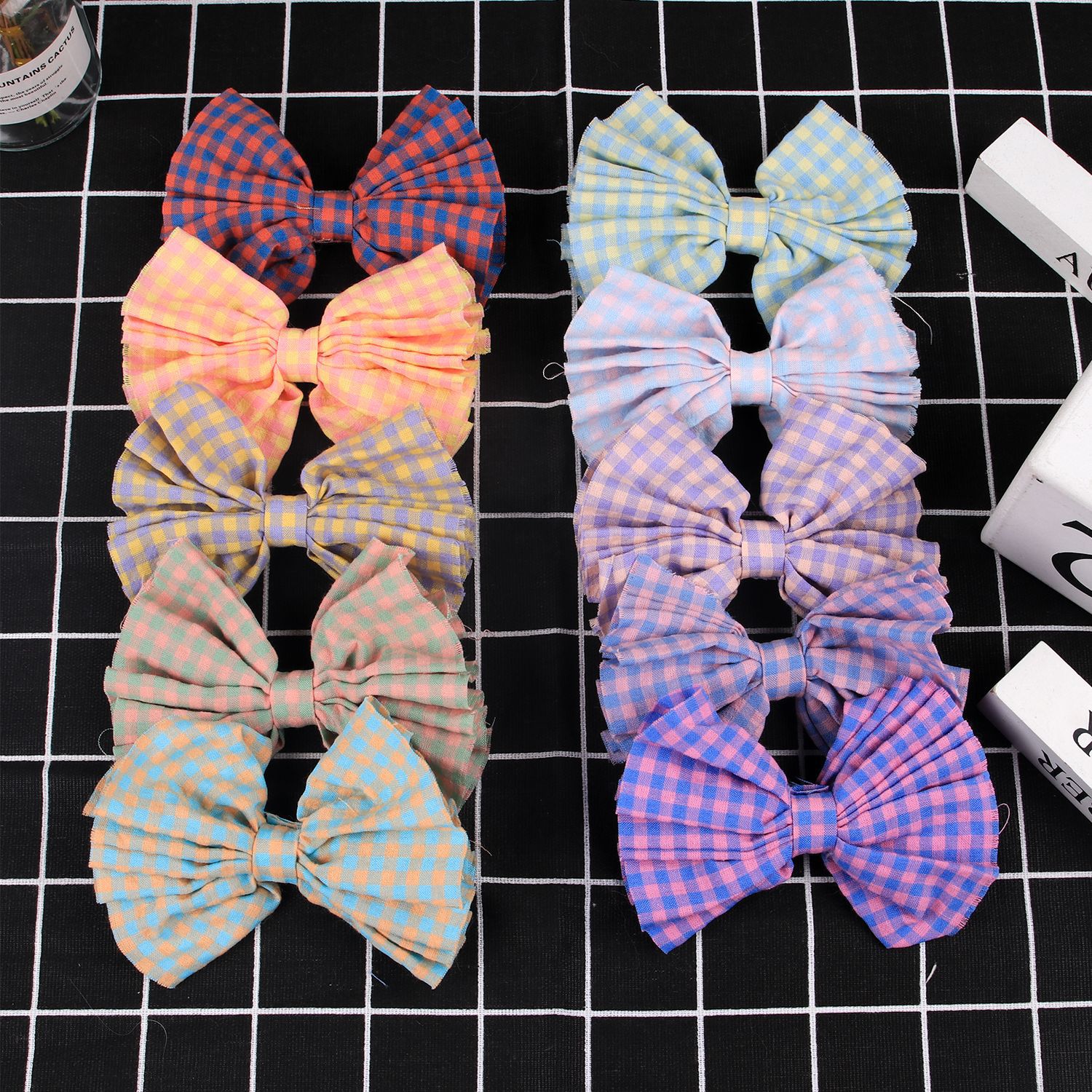 item no.: plaid fabric bow barrettes