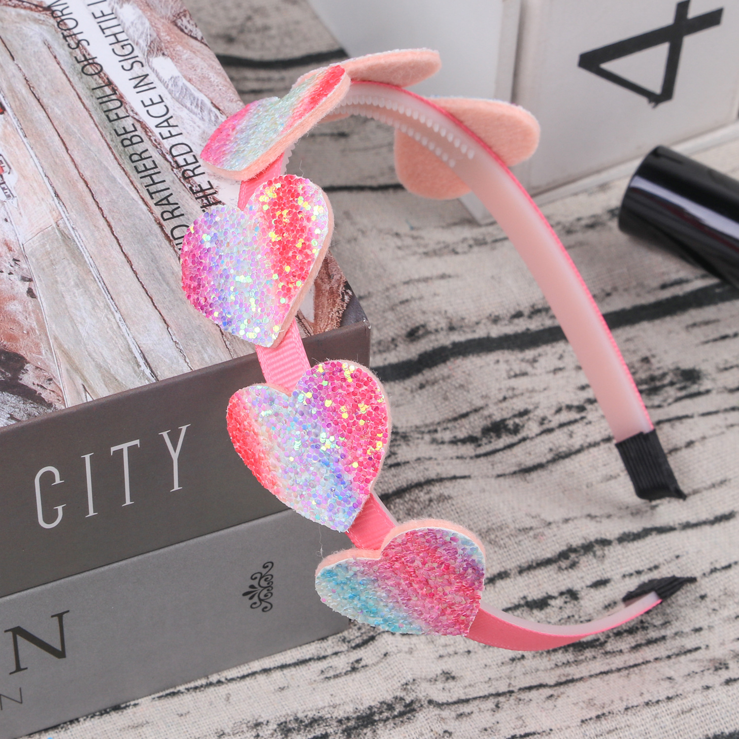 cross-border amazon children's great sequined headband colored loving heart xingx headband birthday party hair accessories