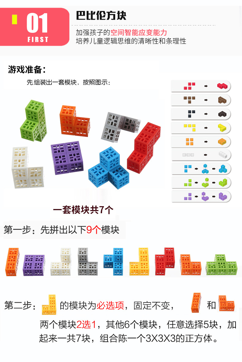 300 pieces (30 of each color) in a drawstring bag, plus 2 picture books as a gift.