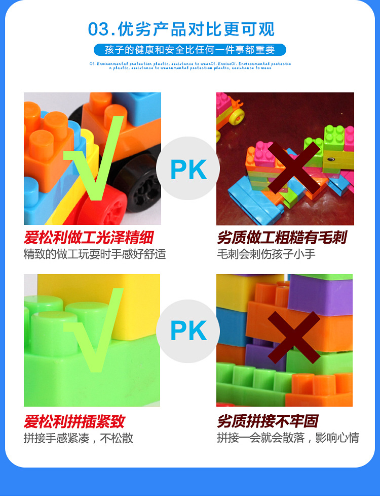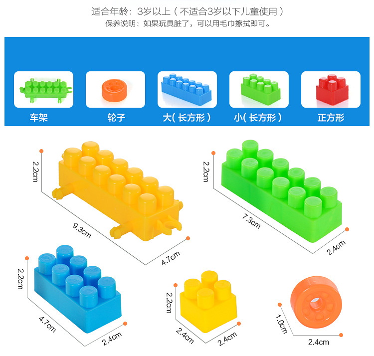 plastic building blocks type: large particles
