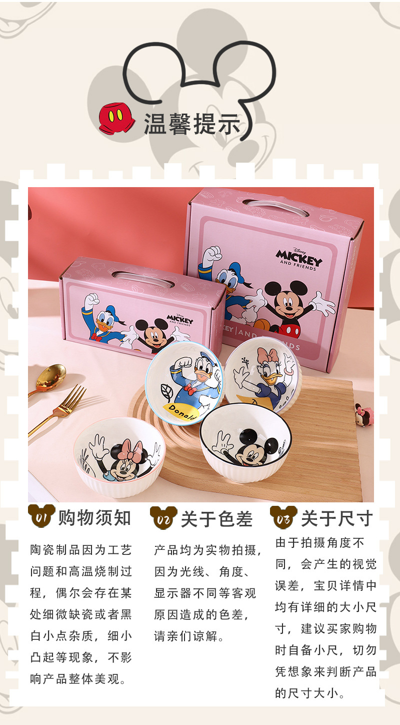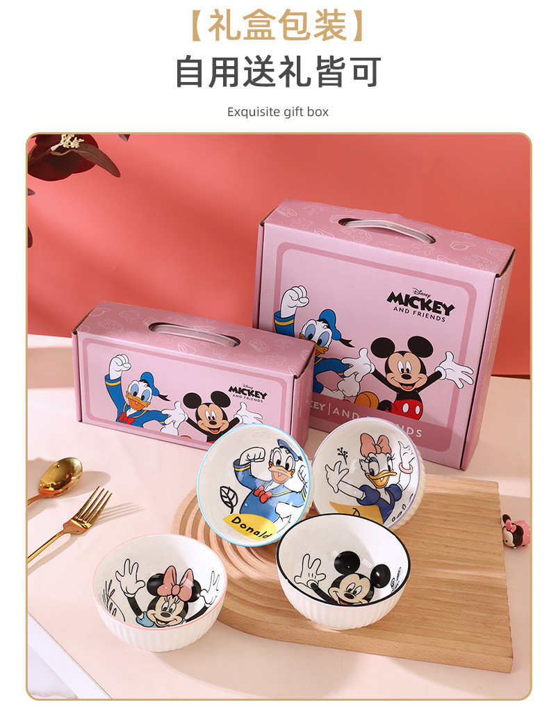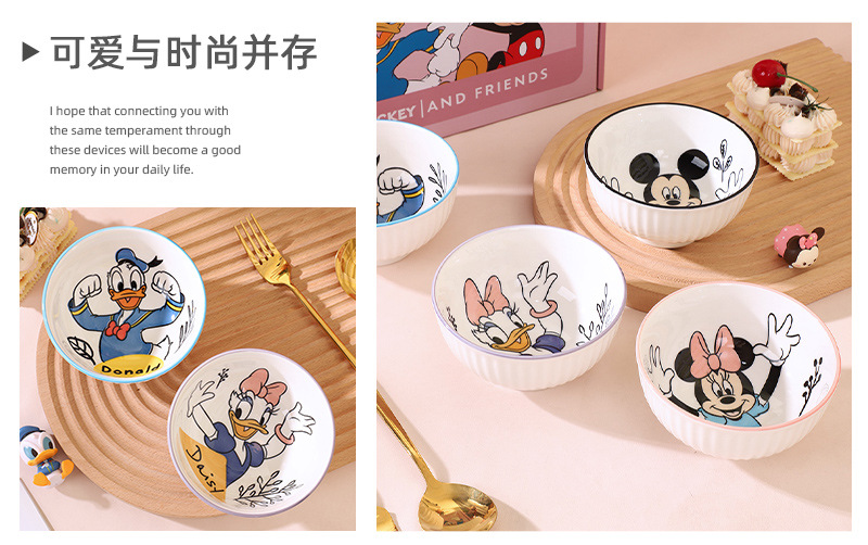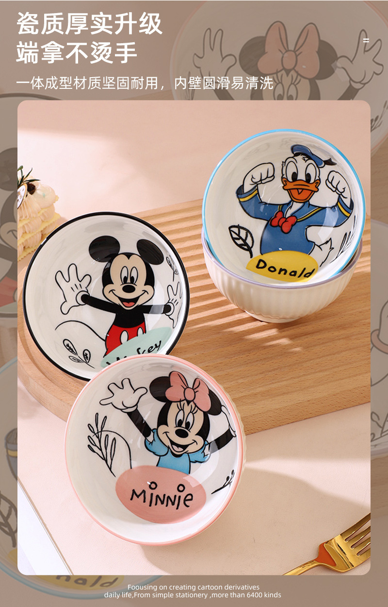 mickey minnie donald duck daisy 4.5-inch vertical pattern tall bowl-four bowls mixed (no gift box)