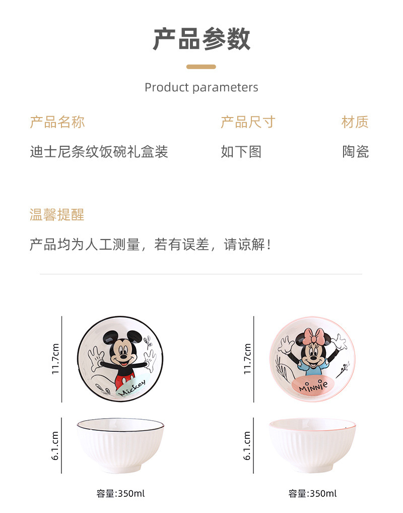 disney 4.5-inch striped bowl (mickey + minnie) gift box