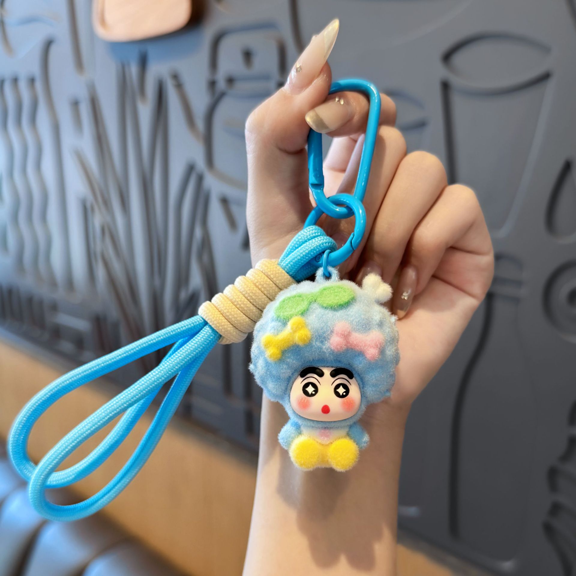 pendant-flocked afro shin-chan [blue]