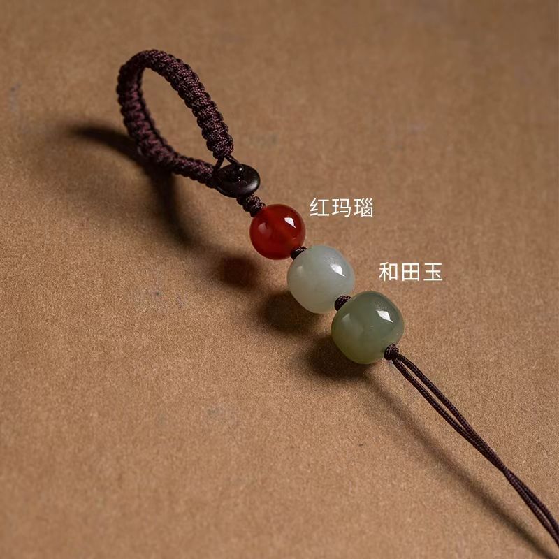 red agate + two hetian jades-red rope-dorje knot