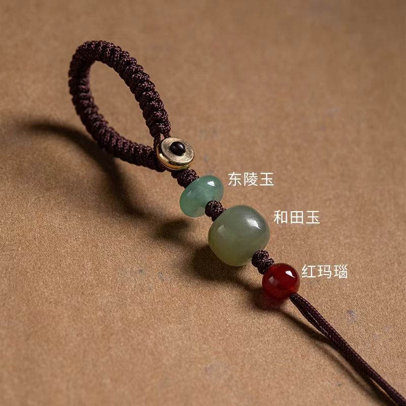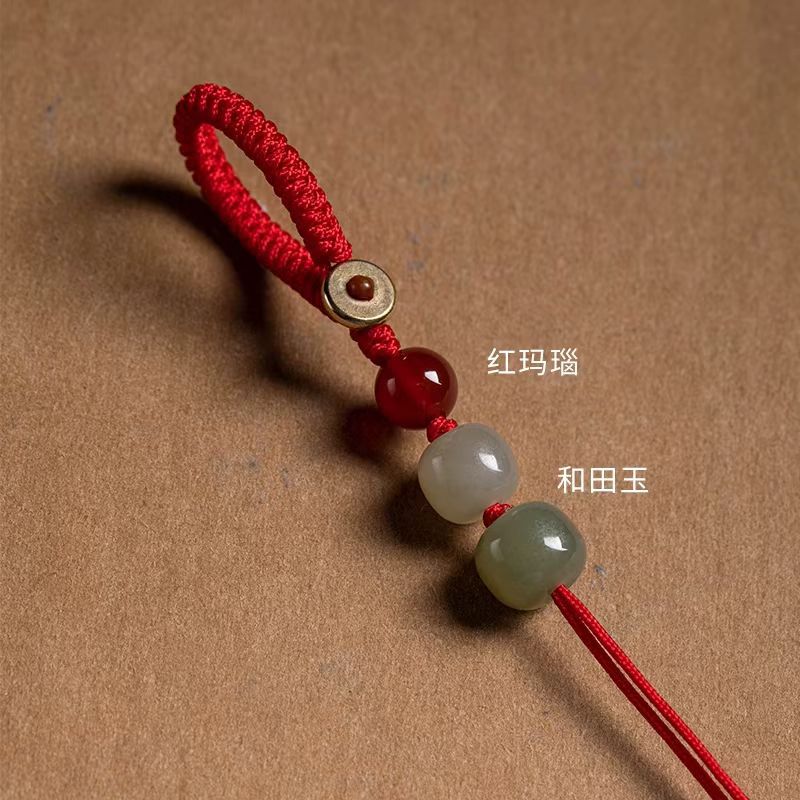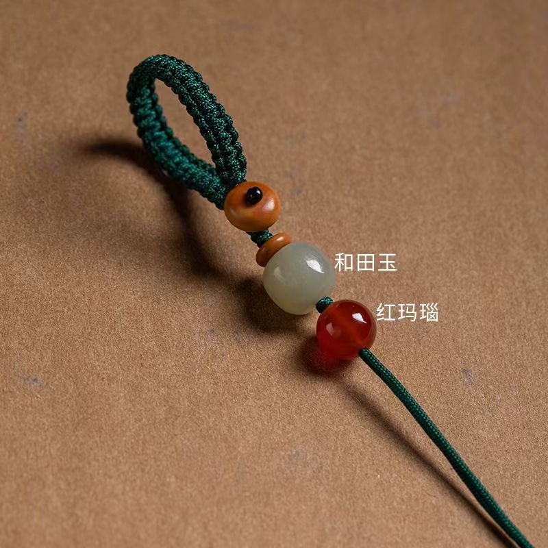 khotan jade + red agate-green rope