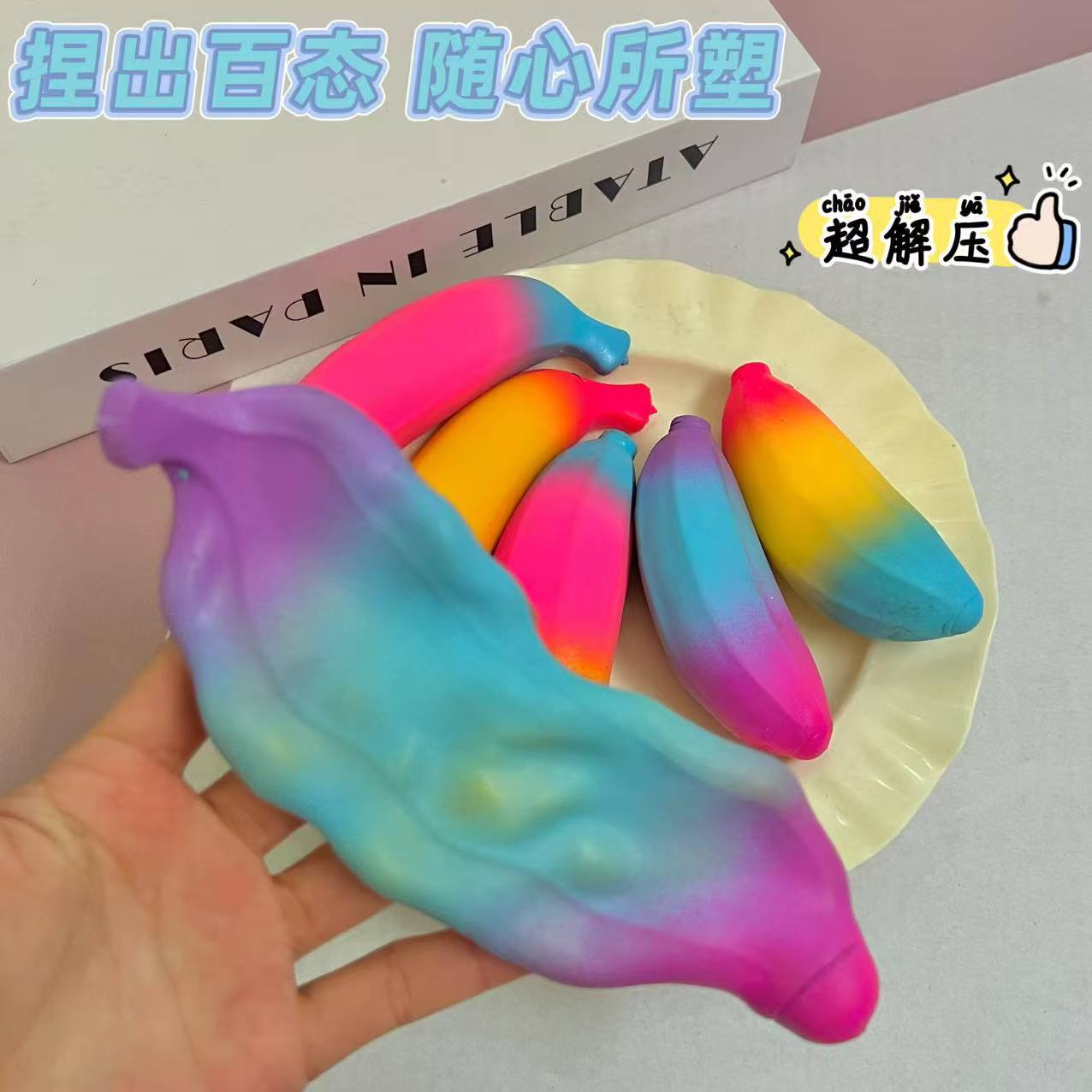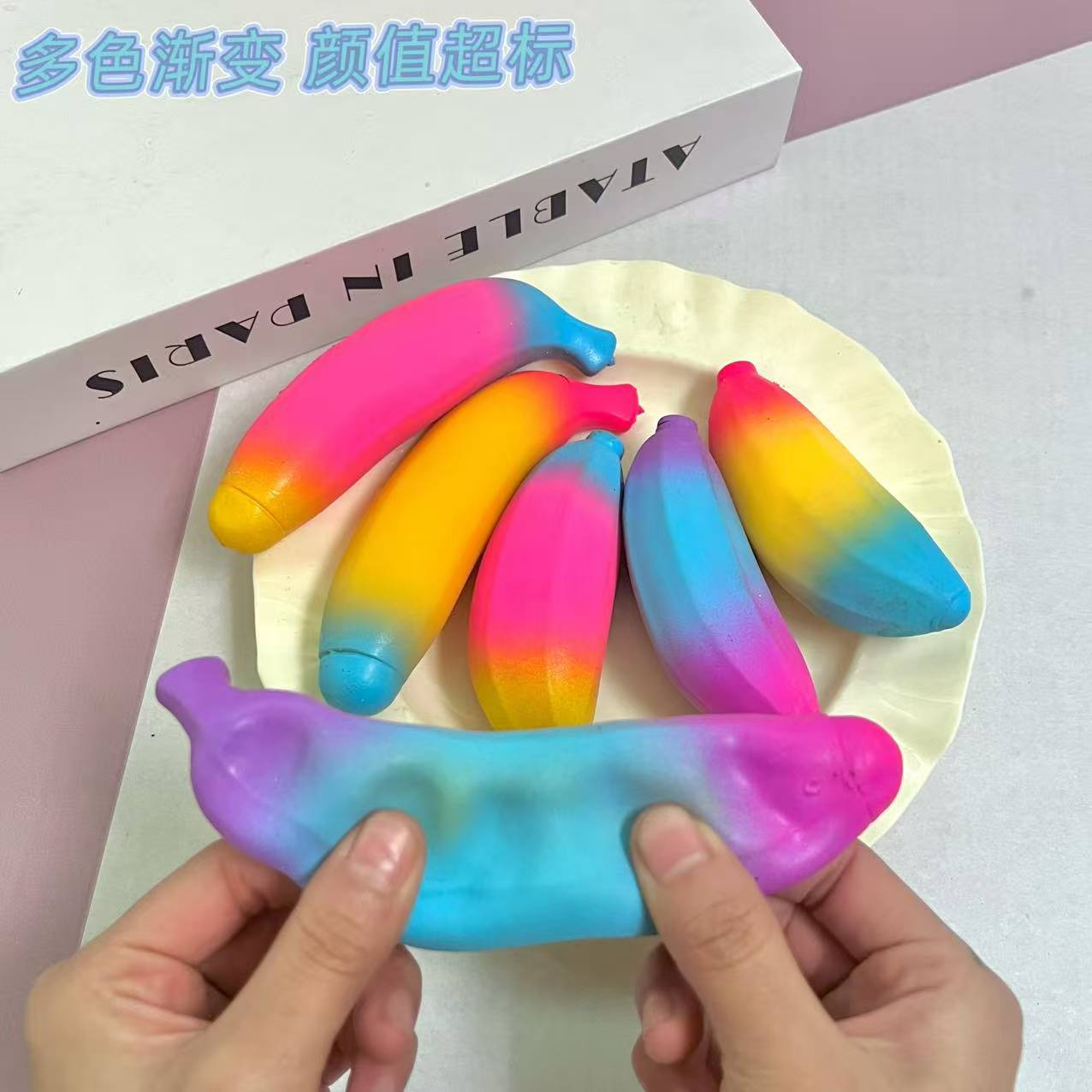 color: pink, sky blue, yellow