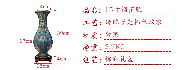 boutique beijing cloisonne craft gift cultural decoration traditional cloisonne cloisonne enamel polished 15-inch steel vase