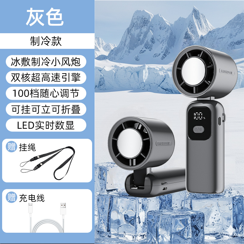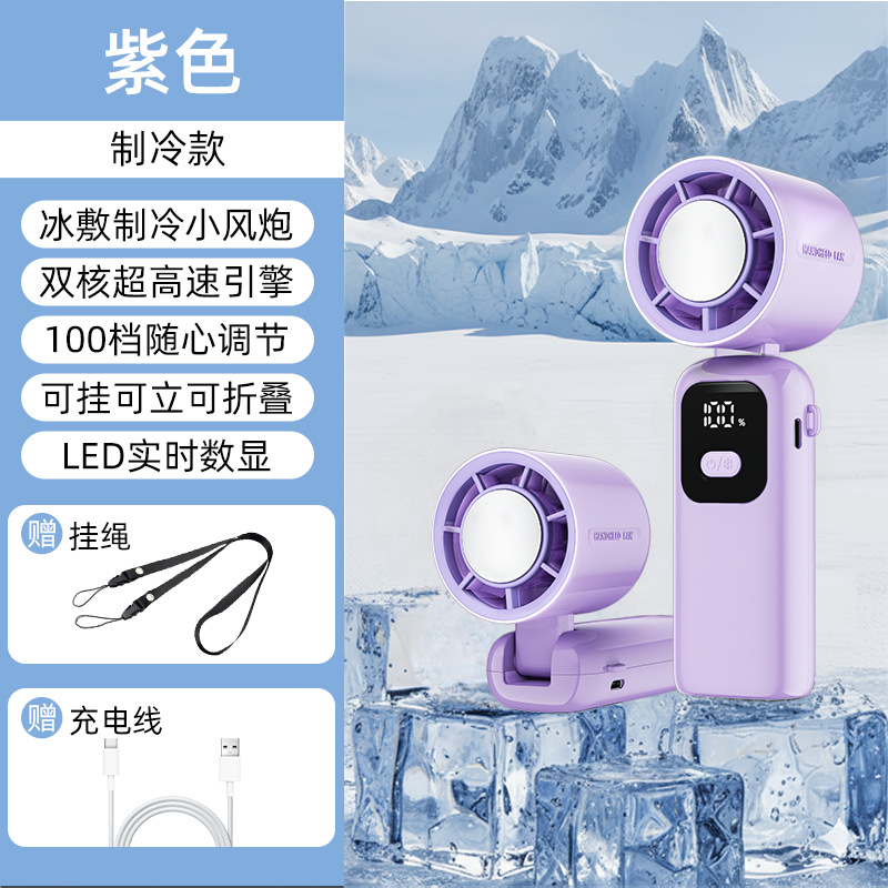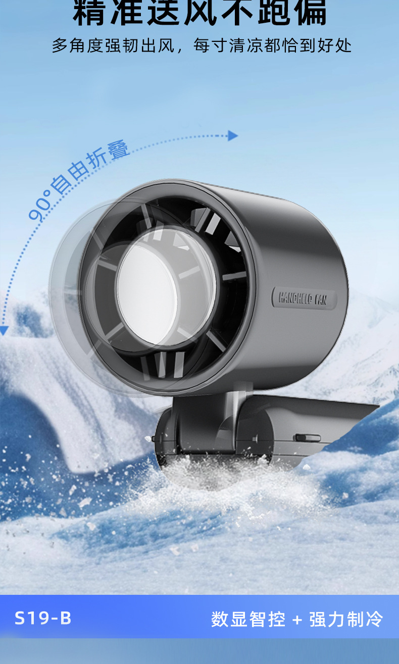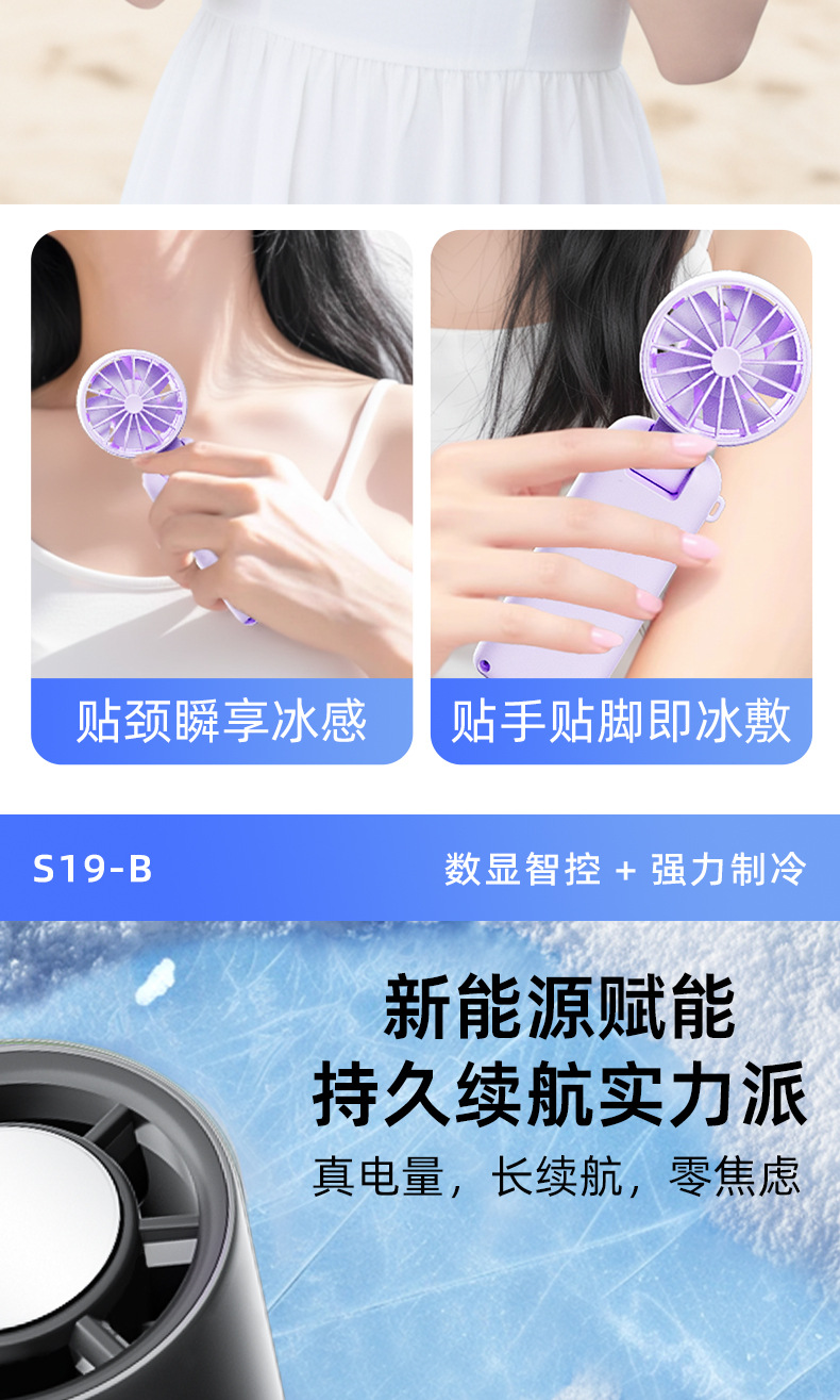 new s19-b handheld fan mini usb fan large wind ice compress digital display dual electric long endurance portable outdoor