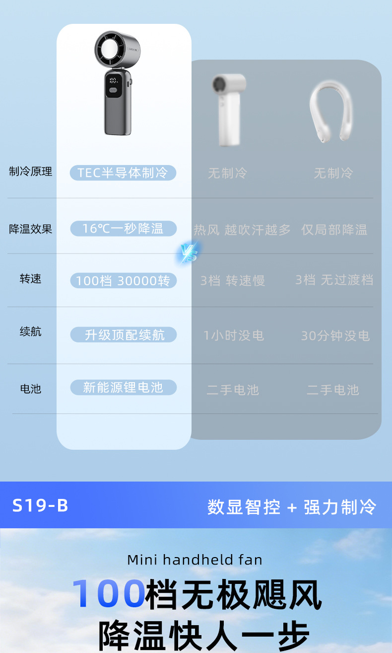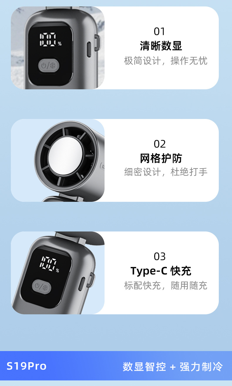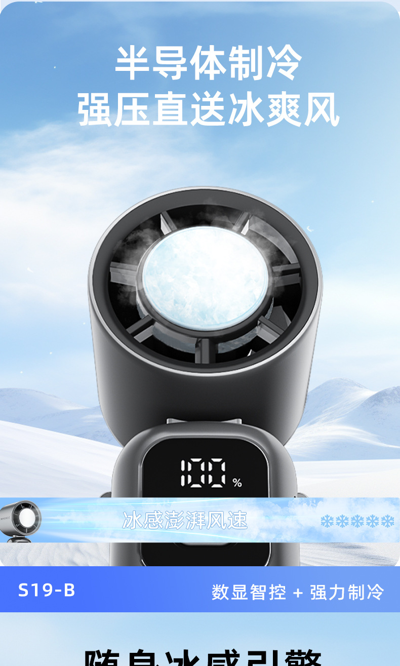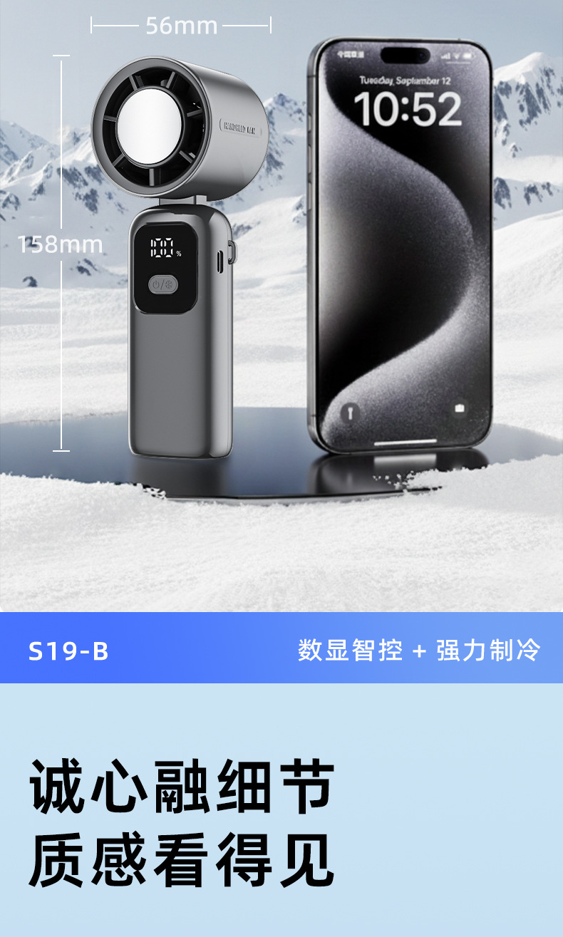 new s19-b handheld fan mini usb fan large wind ice compress digital display dual electric long endurance portable outdoor