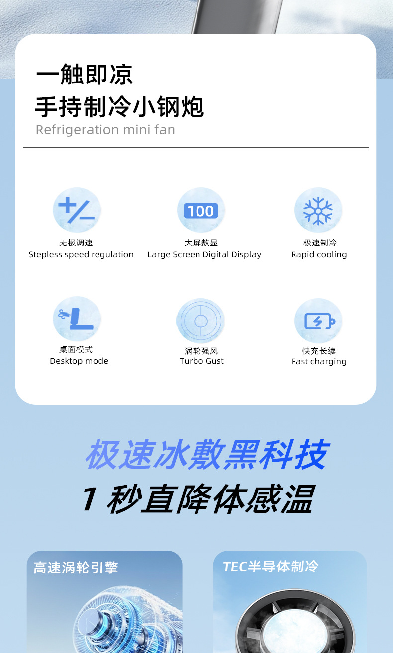 size: high-speed fan + foldable halter + refrigeration