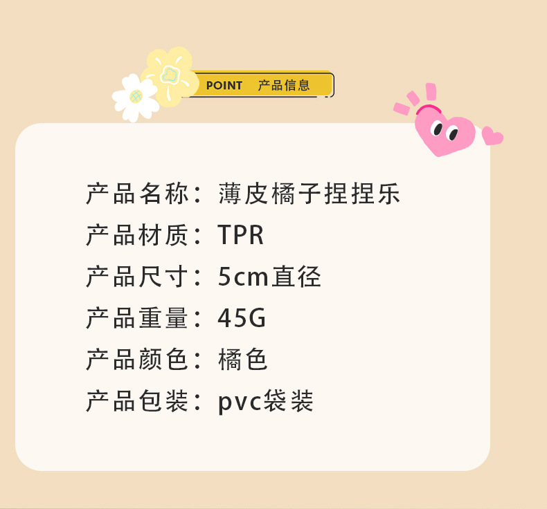 color: thin peel orange squeezing toy
