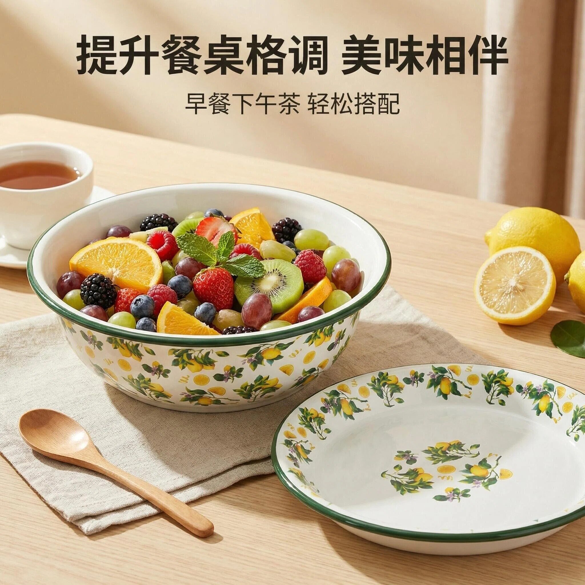 35cm shallow plate + 36cm deep basin [thick-grid lemon] a set is a good buy.