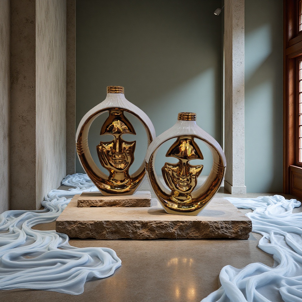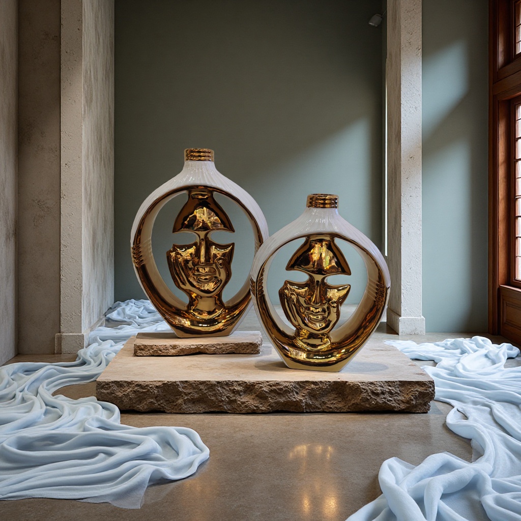 This innovative ornament, a handcrafted vase, is made using high-temperature ceramic and is electroplated to isolate electricity. It has a novel style and a unique shape, making it suitable for both home decoration and gifts. It comes in various sizes, and you can contact us at 13957912609 for more details.