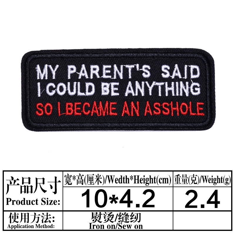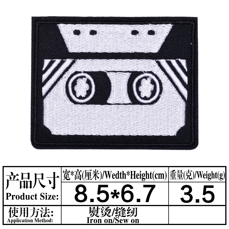 Badge Patch Embroidered Patch Black and White Color English Text Embroidered Patch English Letters Rectangular Product Photo Display