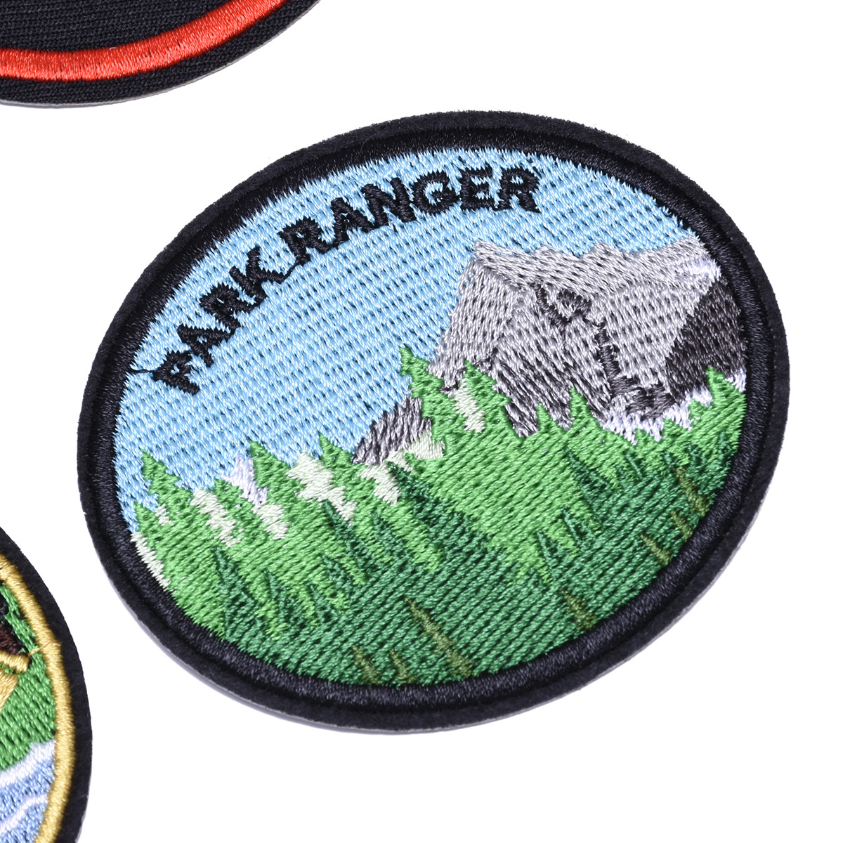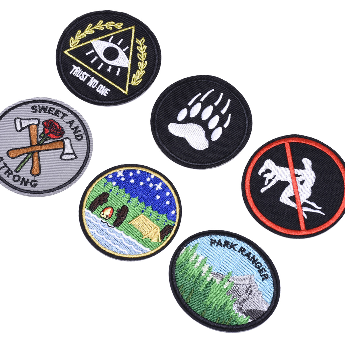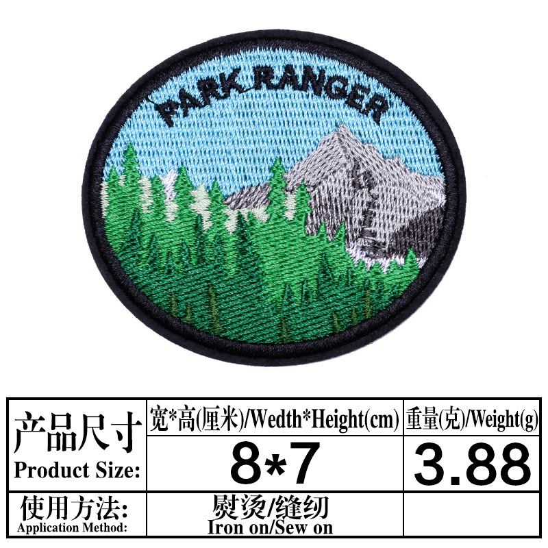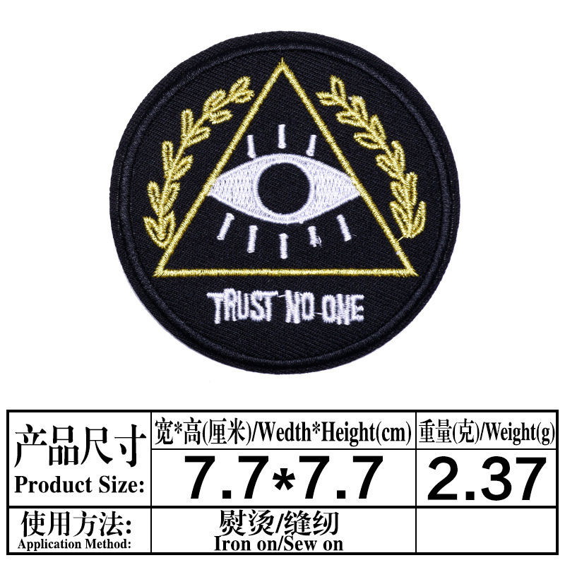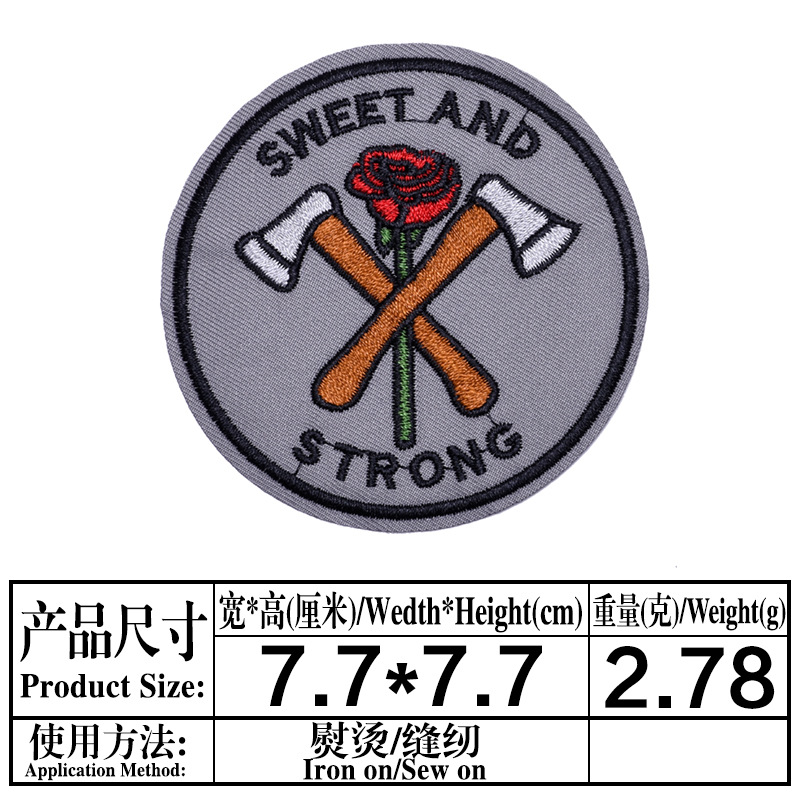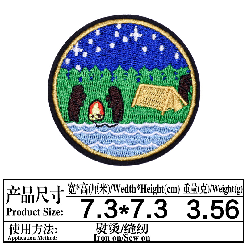 Computer embroidery patch with circular badge and adhesive patch for shoe, hat, luggage, bags, clothing accessories, e-commerce supply.