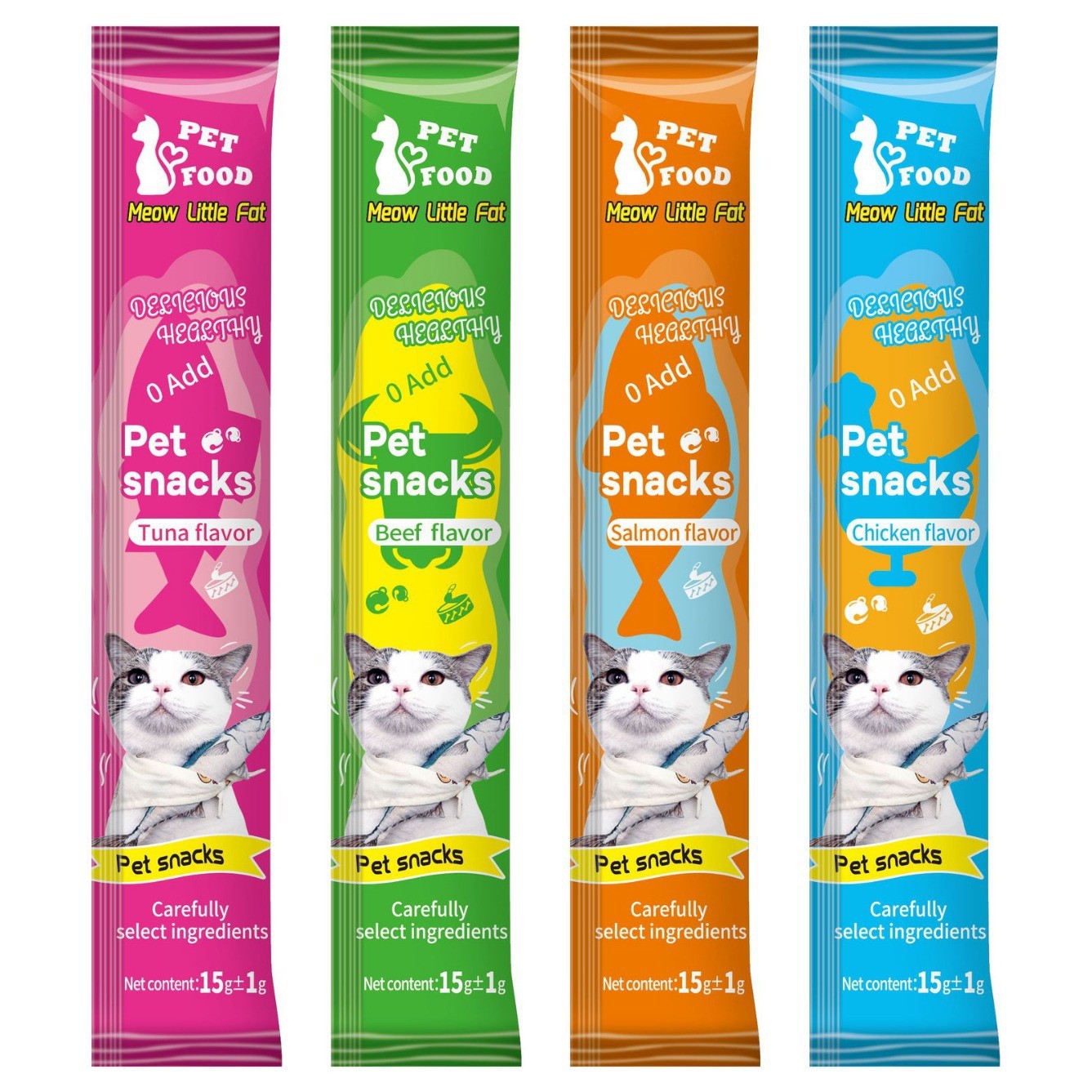 chicken flavor, beef flavor, salmon flavor, tuna flavor