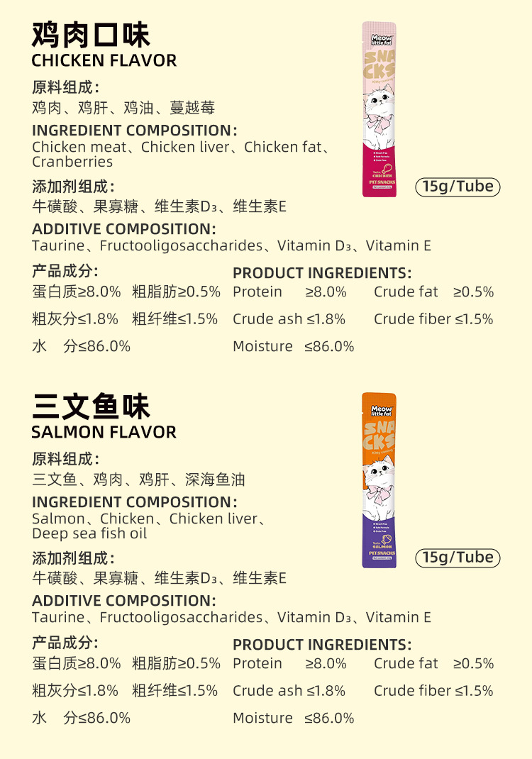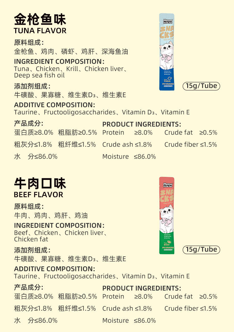 flavor: tuna flavor, salmon flavor, chicken flavor, beef flavor