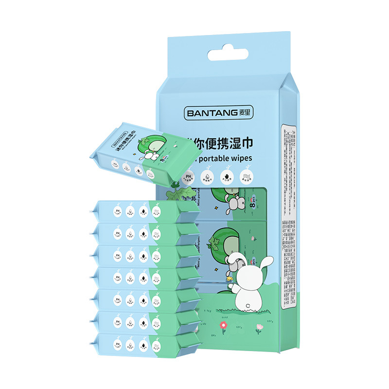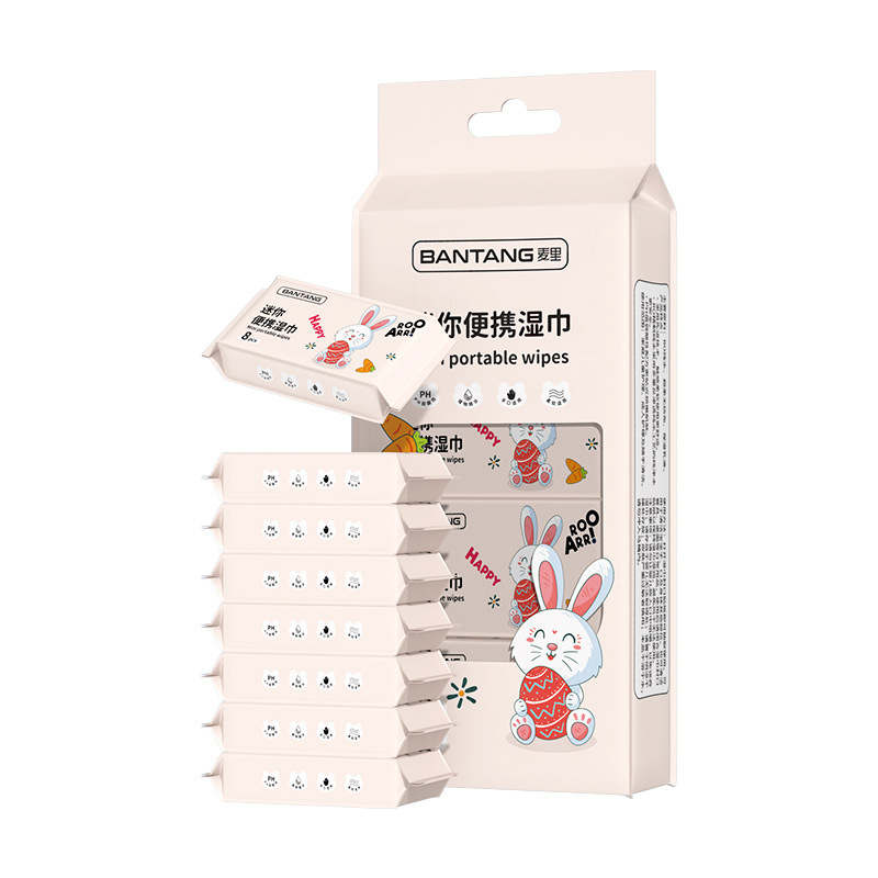 mini wet wipes 8 packs/case (adorable rabbit)