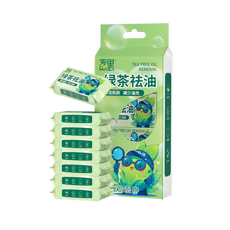green tea oil-removing wipes, 8 packs per case
