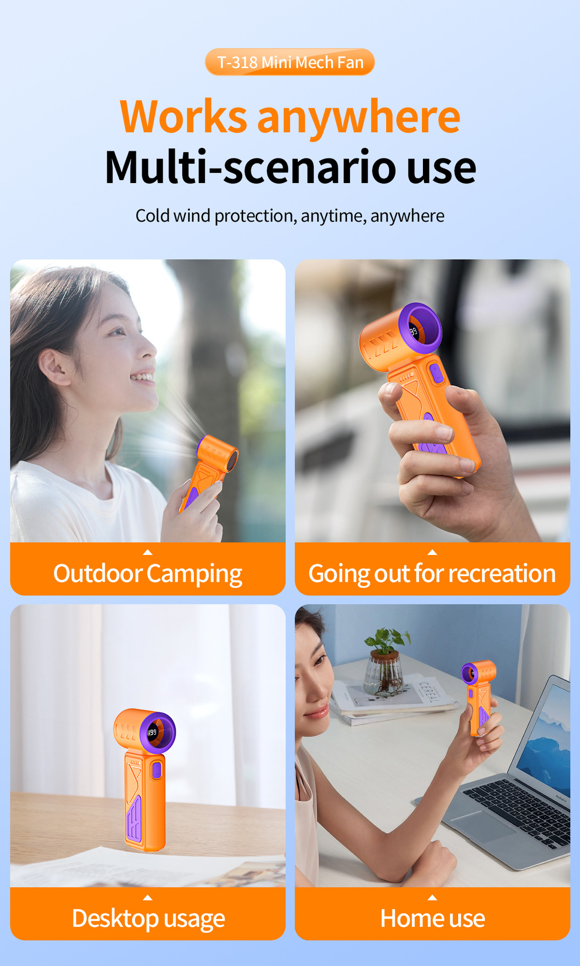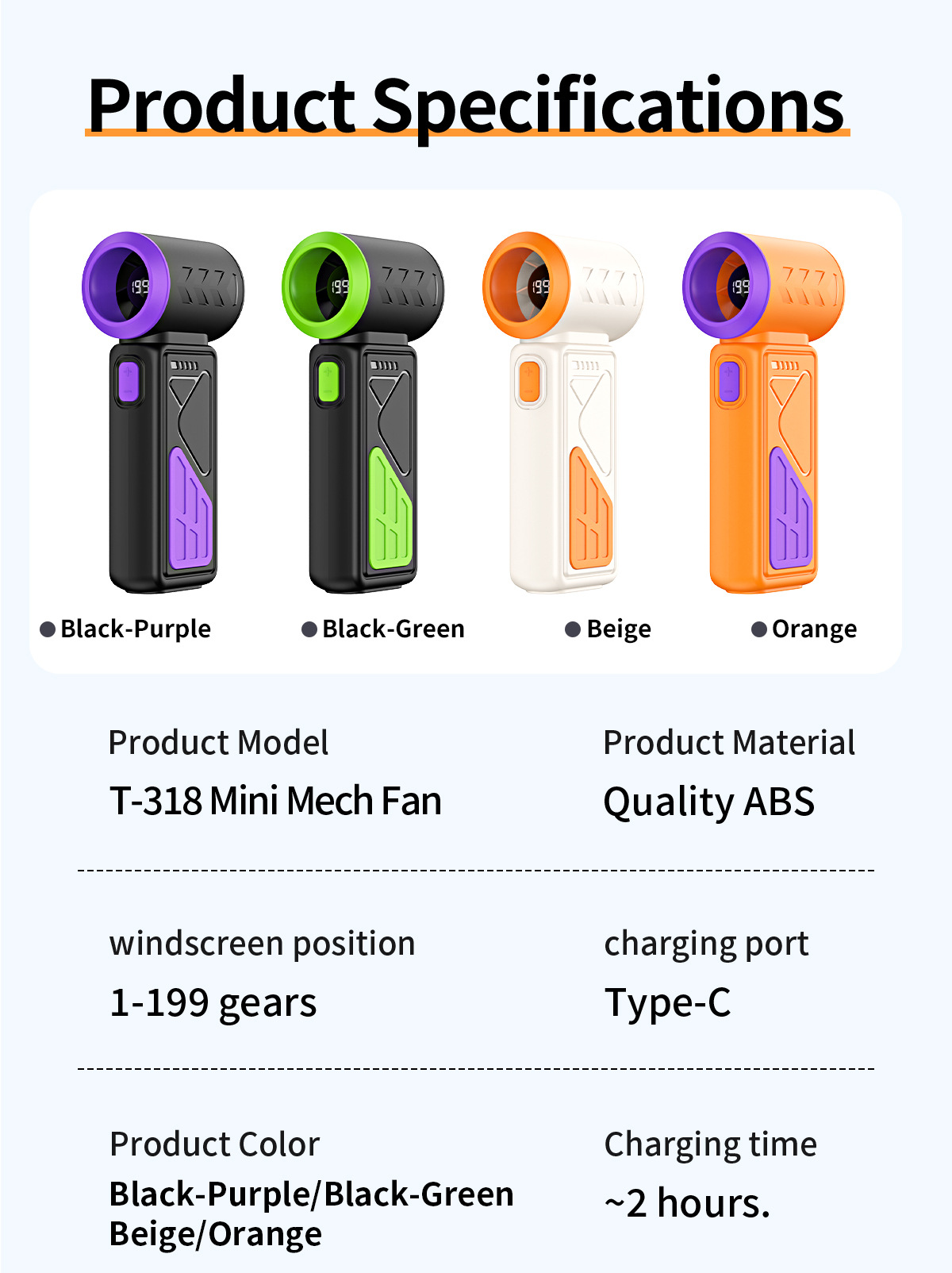 color: purple + black, purple + green, orange + purple, orange + white