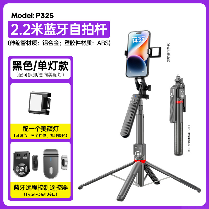 p325 selfie stand/2.2 m aluminum alloy/single light