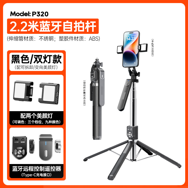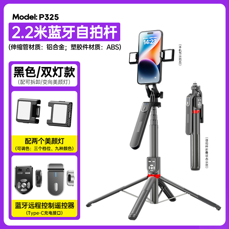 p325 selfie stand/2.2 m aluminum alloy/double light