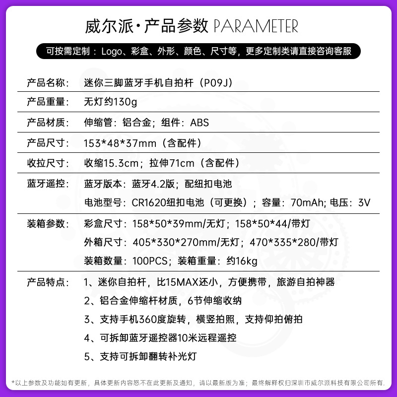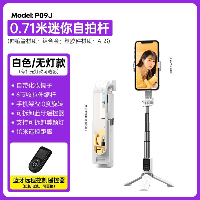 p09j mini aluminum alloy selfie stick/white/no light