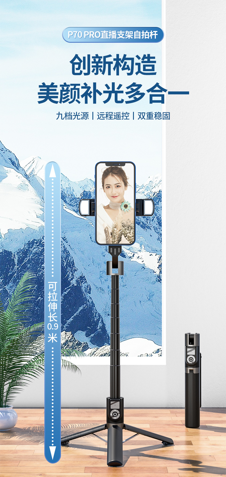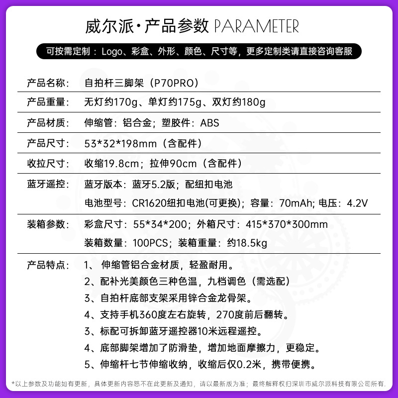 p70pro with keel/handheld photography bracket/white/single lamp