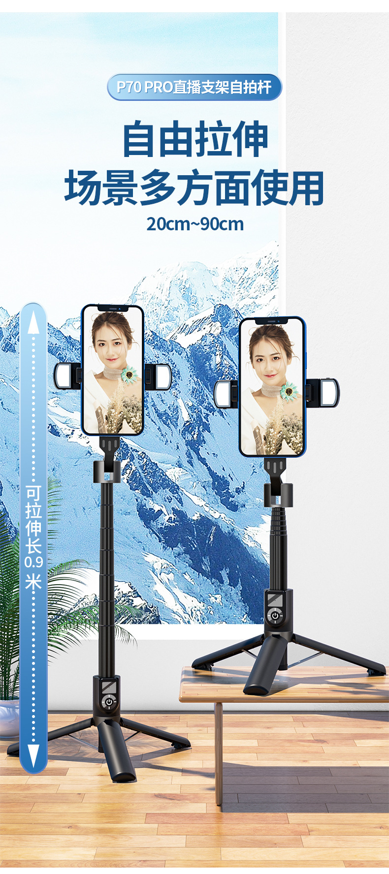 p70pro with keel/handheld photography bracket/white/double lights