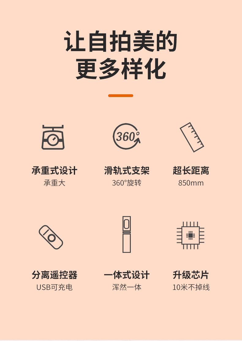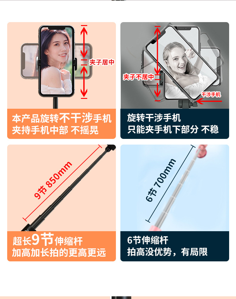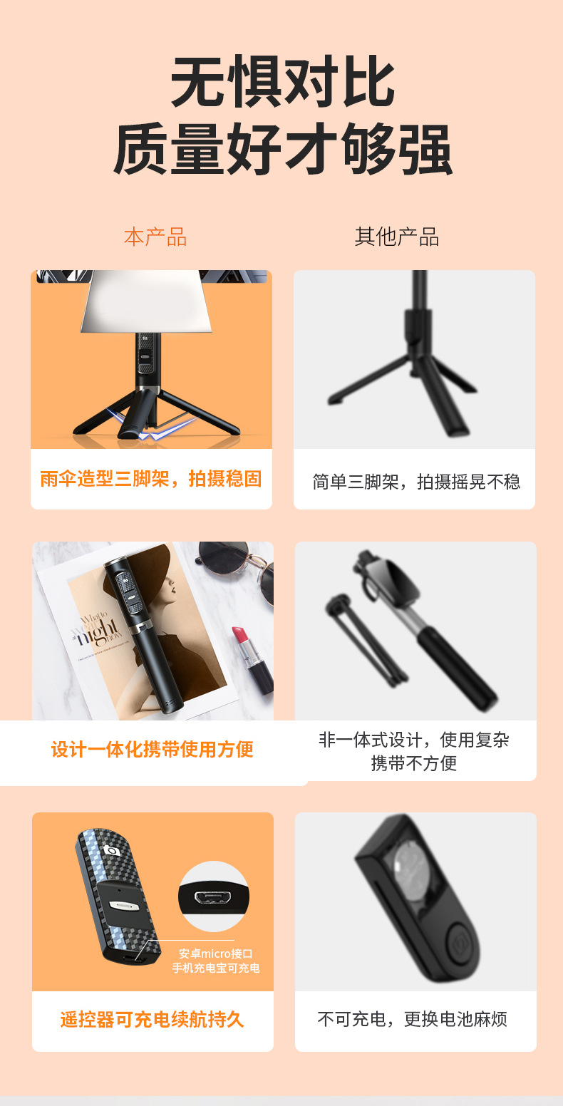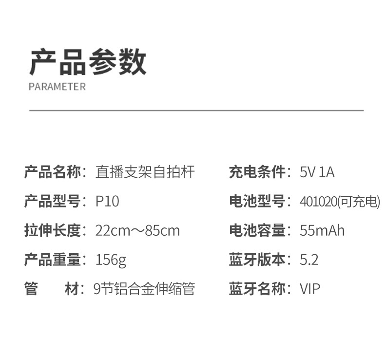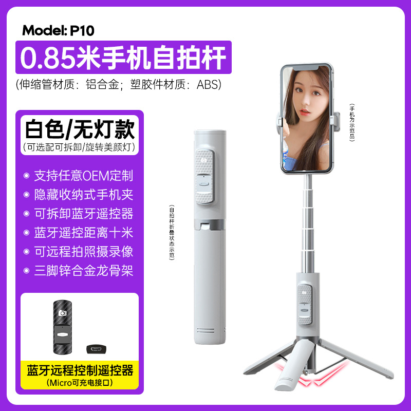p10 selfie stick tripod portable/white/no light