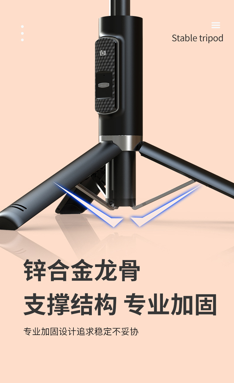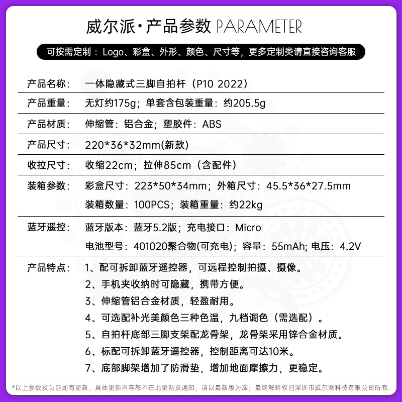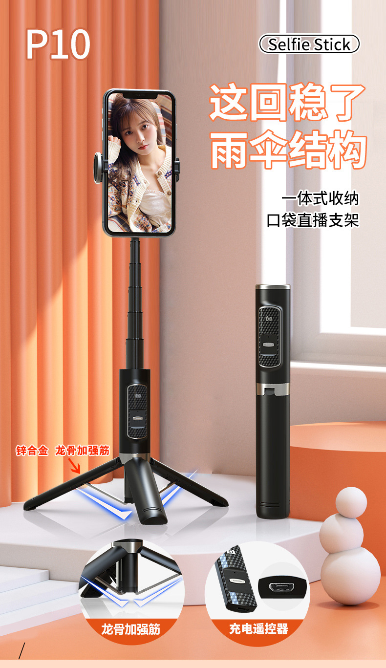 p10 selfie stick tripod portable/black/no light