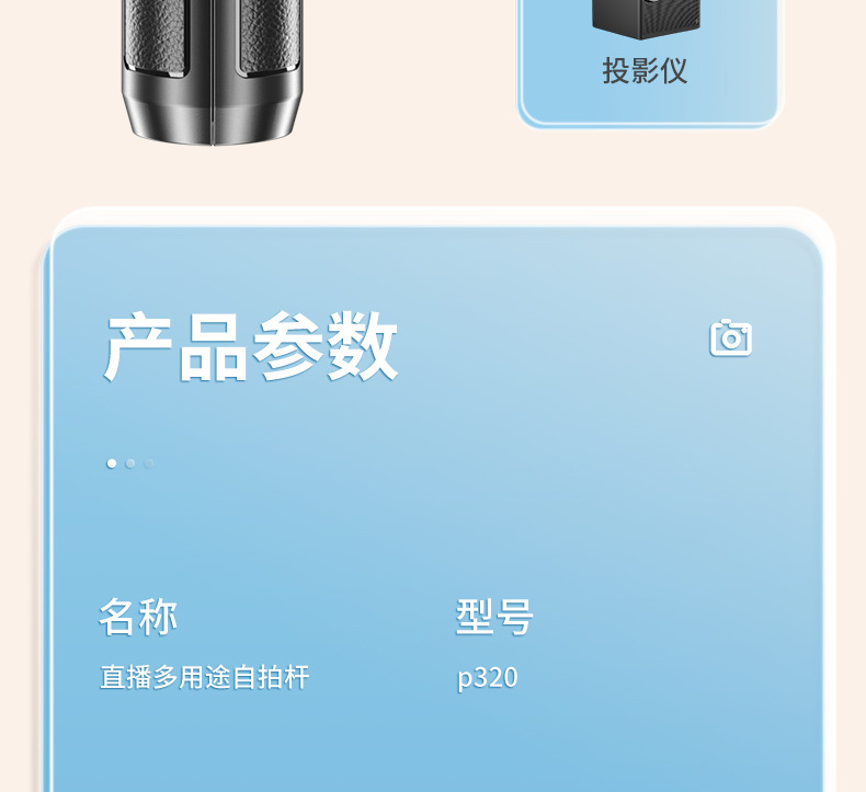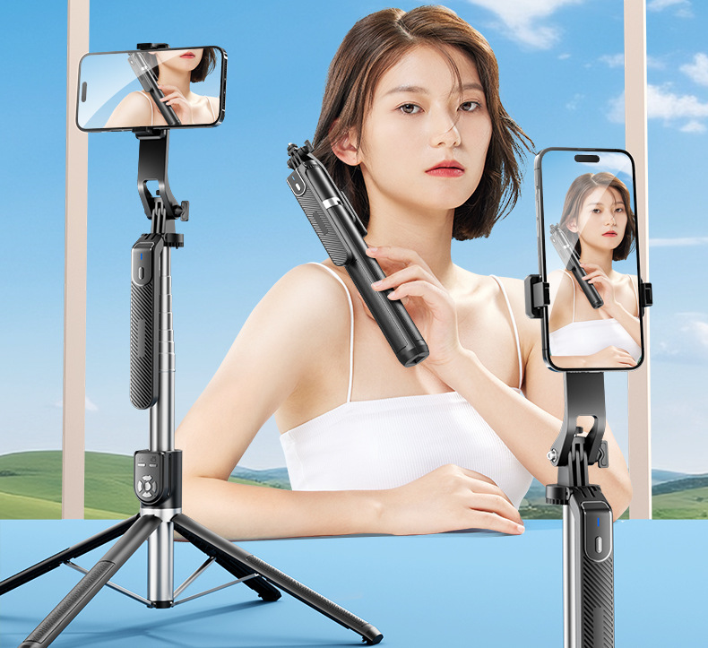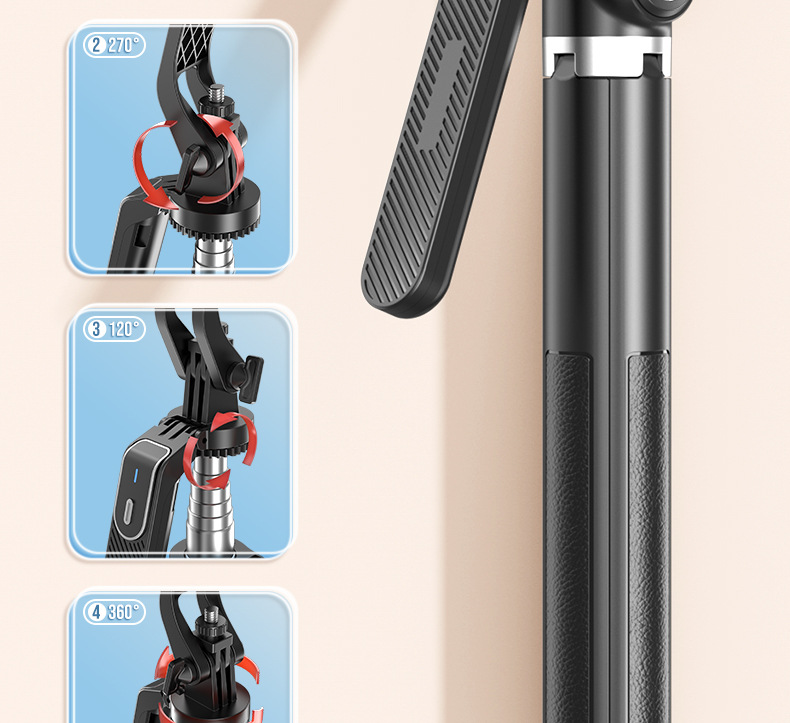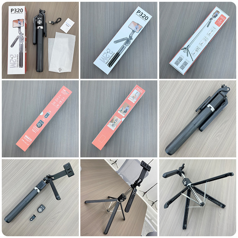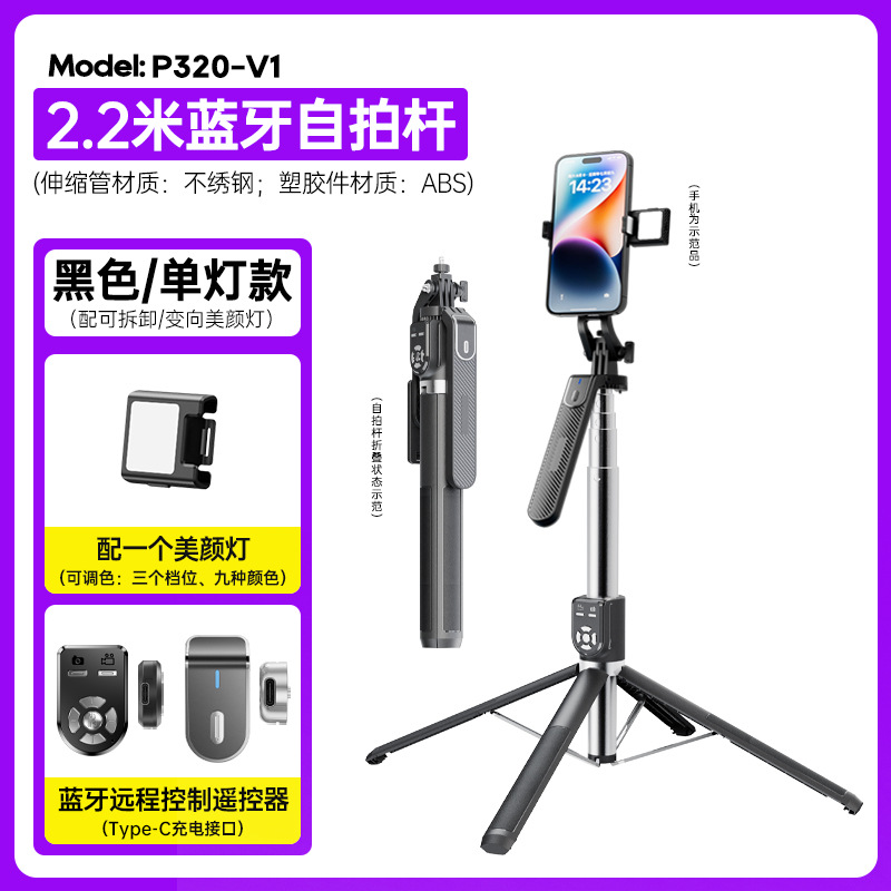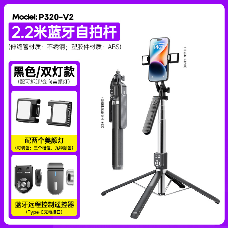 p320-v2 stainless steel double remote control selfie stick/black/double lamp