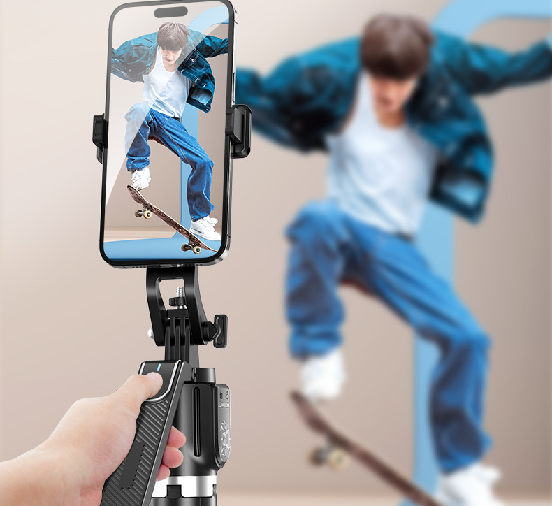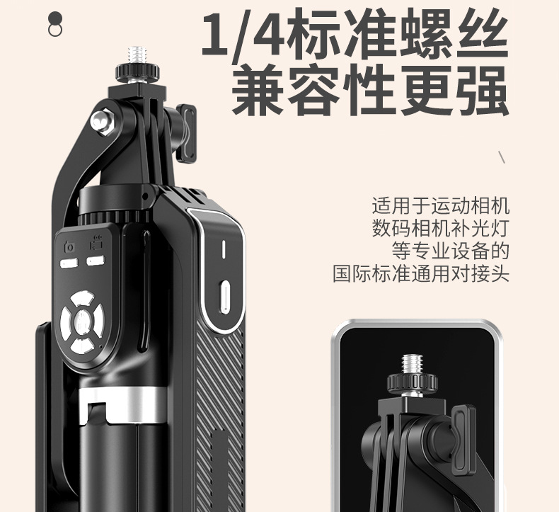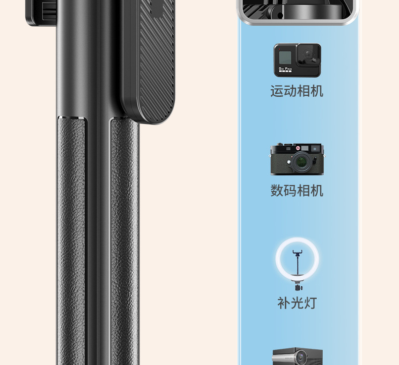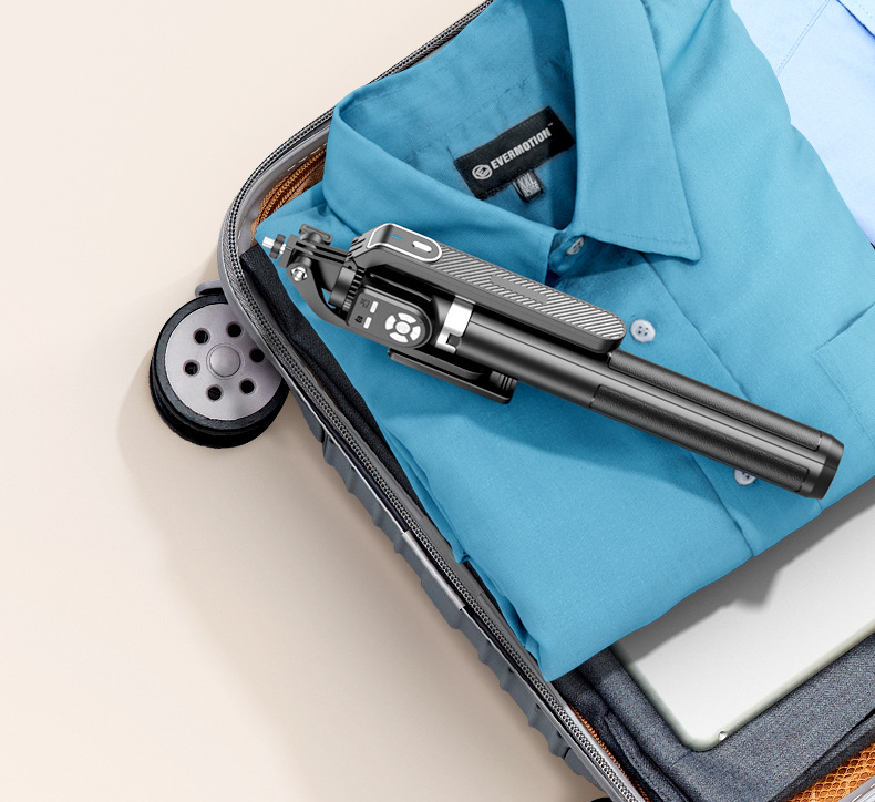 p320-v1 stainless steel double remote control selfie stick/black/single lamp