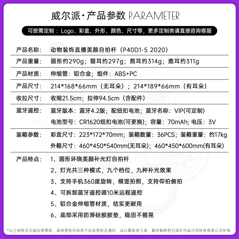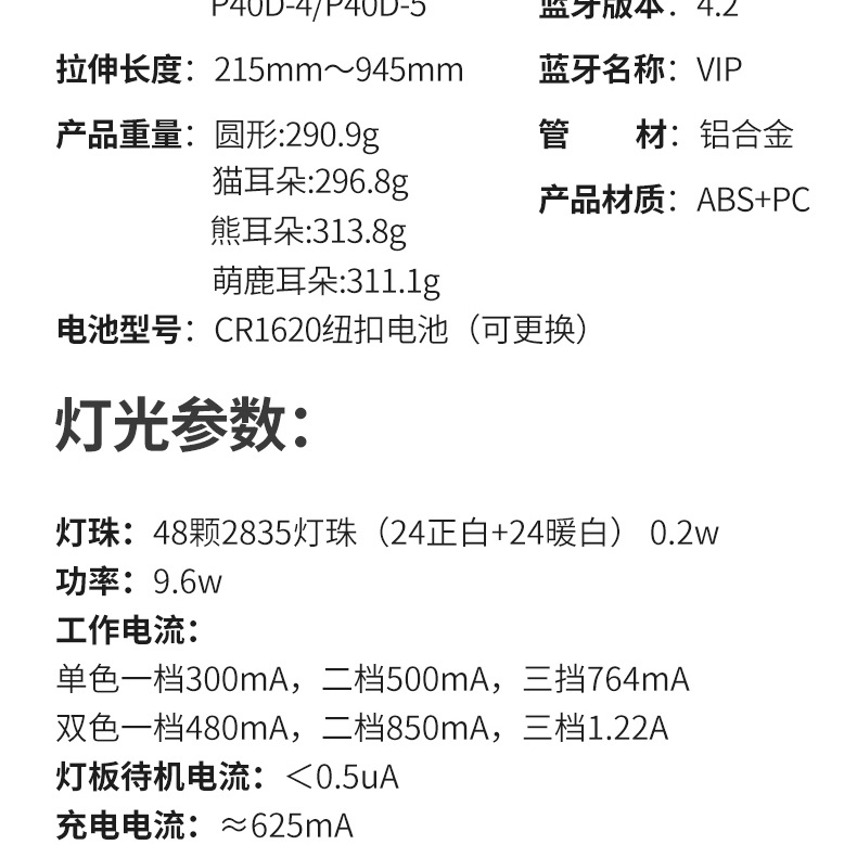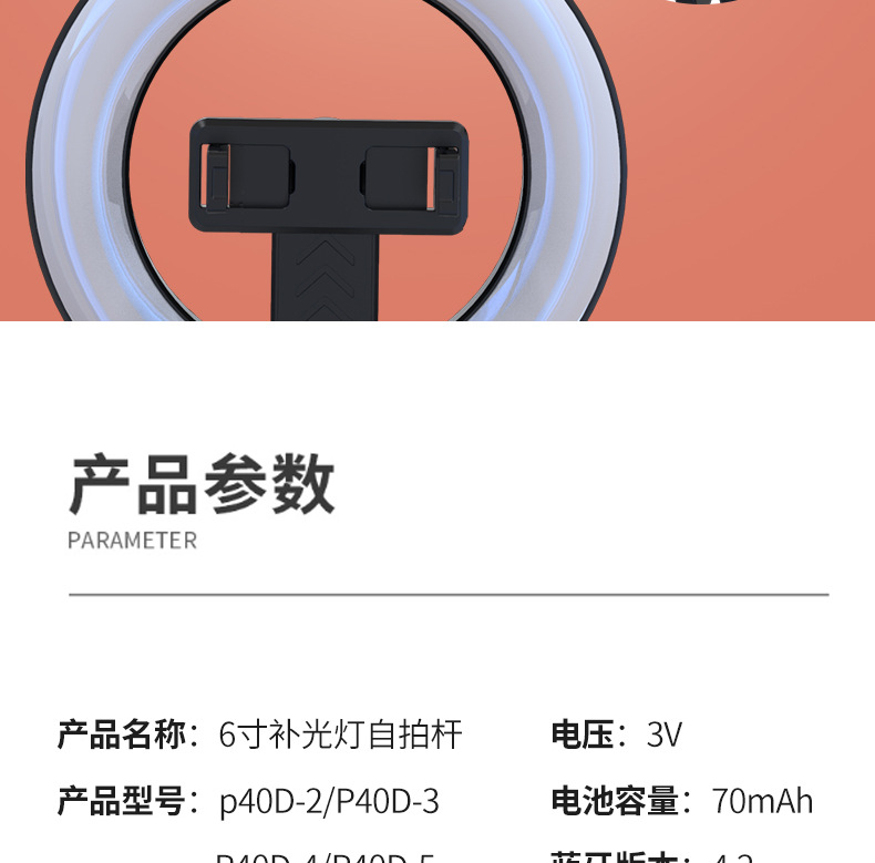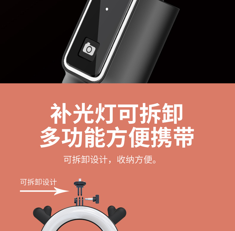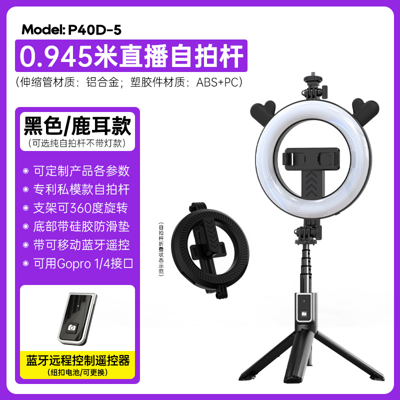 p40d-5 venison ear/beauty fill light selfie stick/black